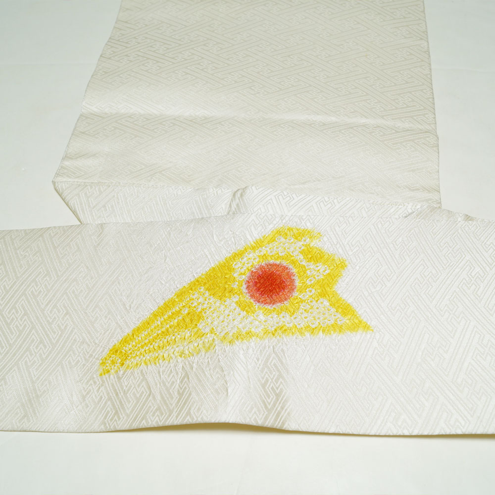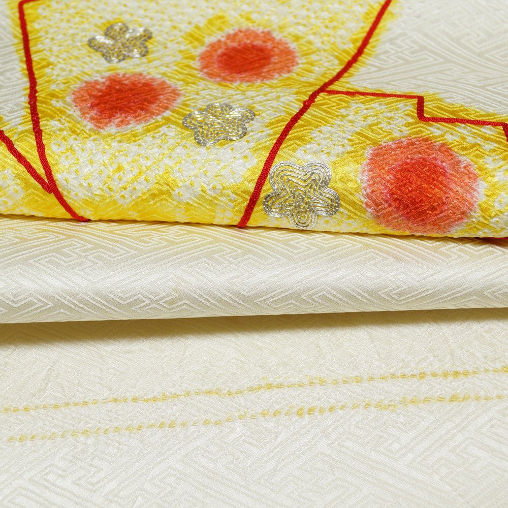 品 名 | 名古屋帯 扇に小花模様 刺繍 絞り染め 絞り 乳白色系 名古屋帯 【名古屋帯 中古 名古屋 帯 正絹 九寸帯 リサイクル着物 名古屋帯 カジュアル】 | ||