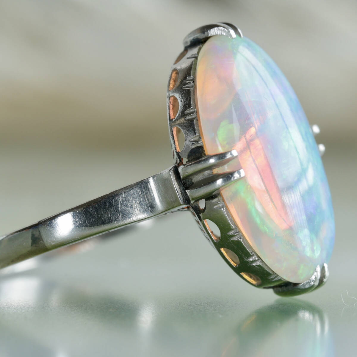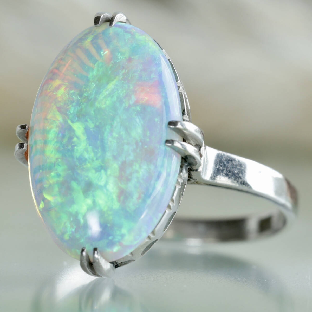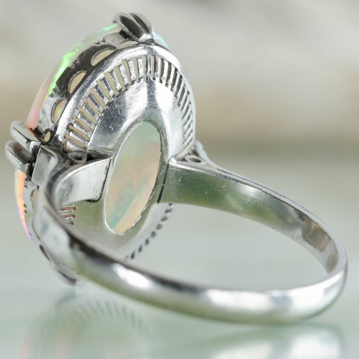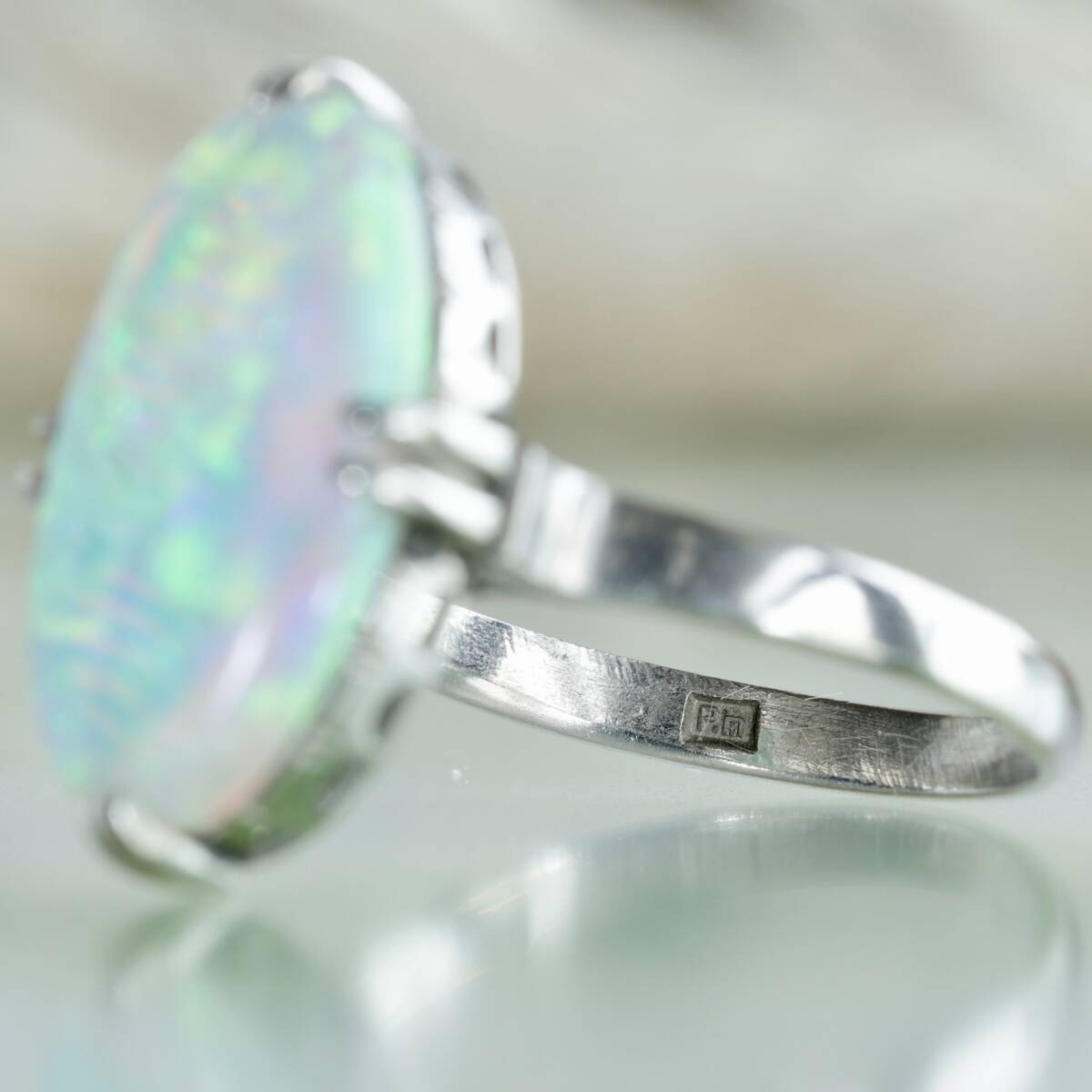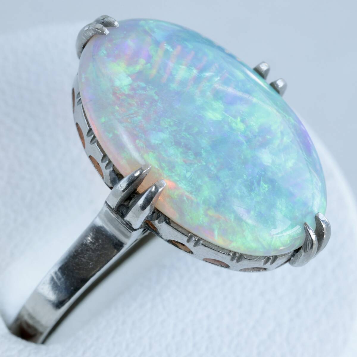 Pm 陽刻 オパール リング 13.5号 プラチナ 指輪 千本透かし プラチナ