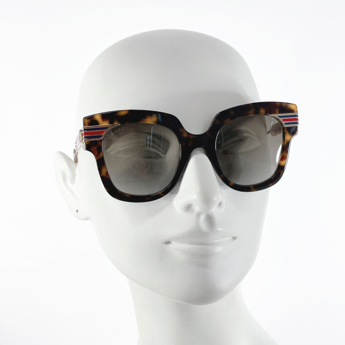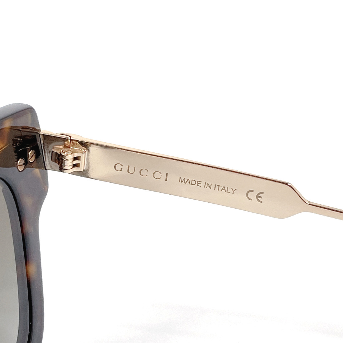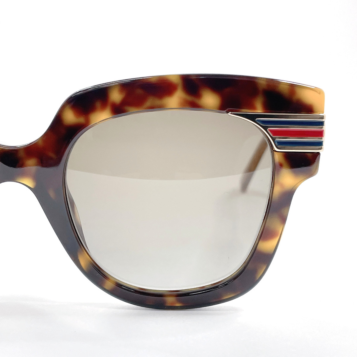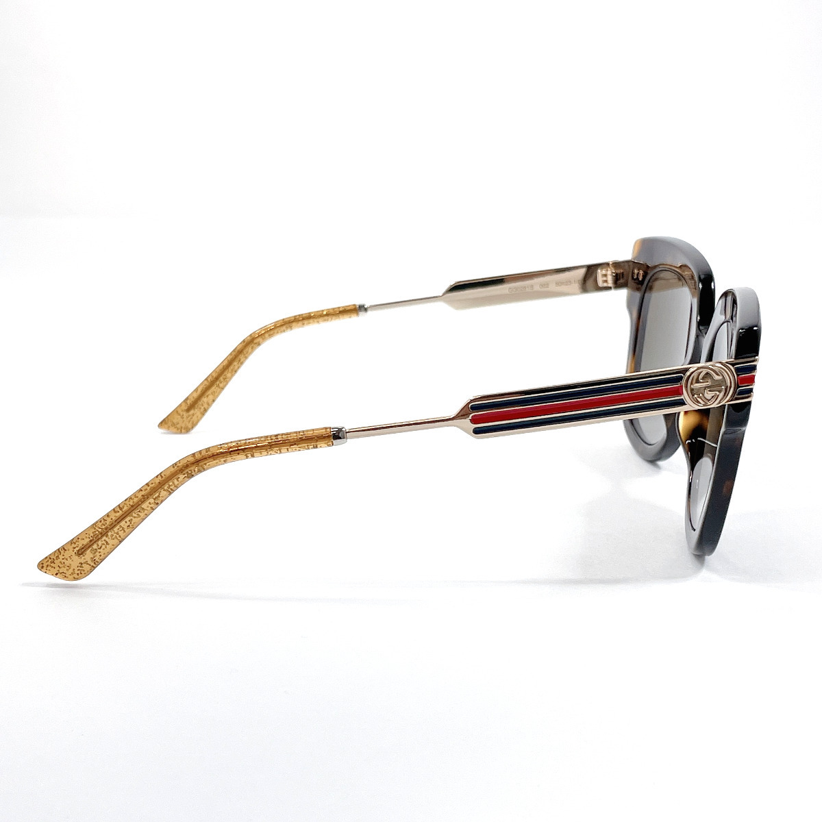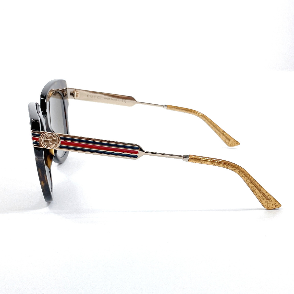 商品説明 | グッチのサングラスです。こちらは日本未発売の新作モデルです。べっ甲調のスクエアフレームのサイドにウェビングラインが施されたGUCCIらしいデザイン。 |