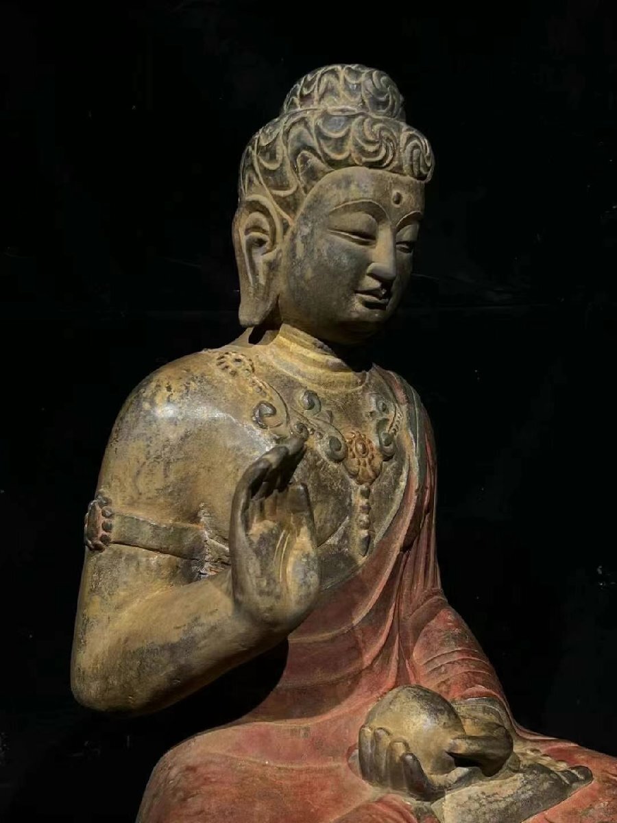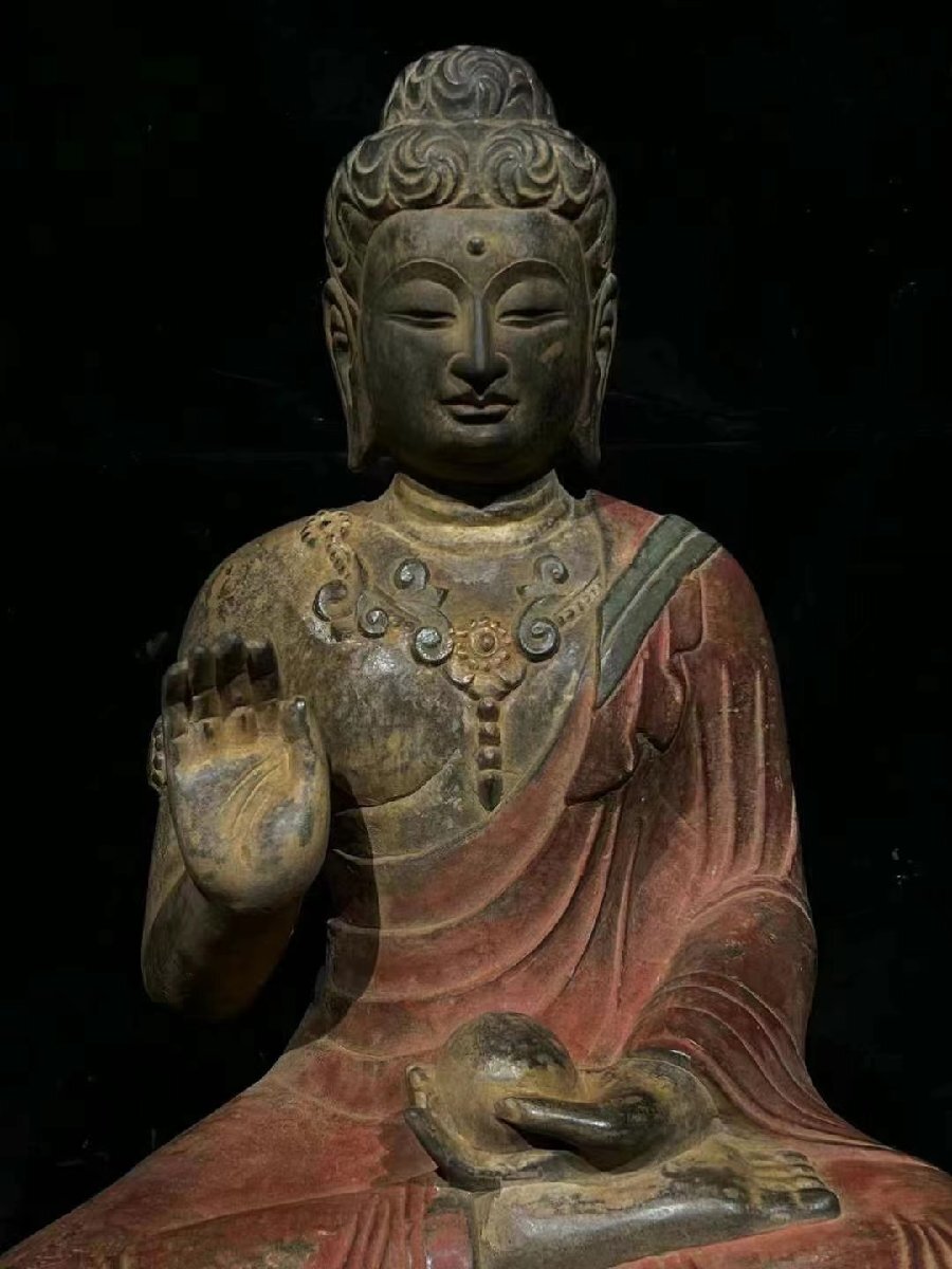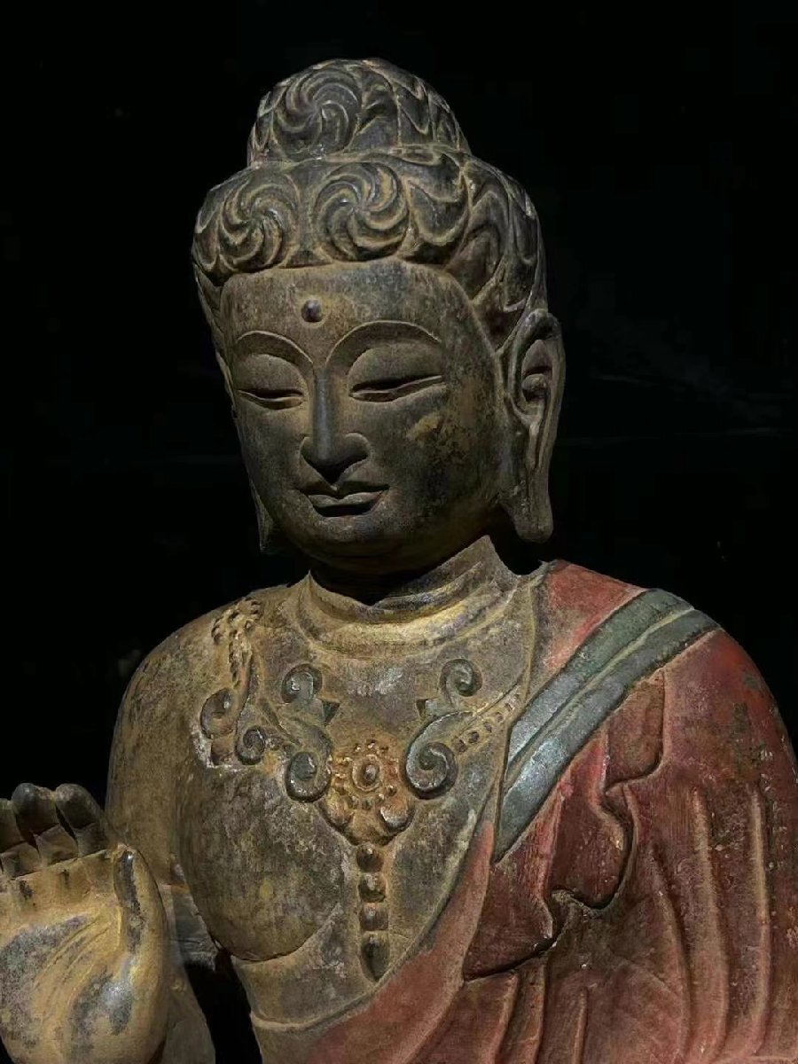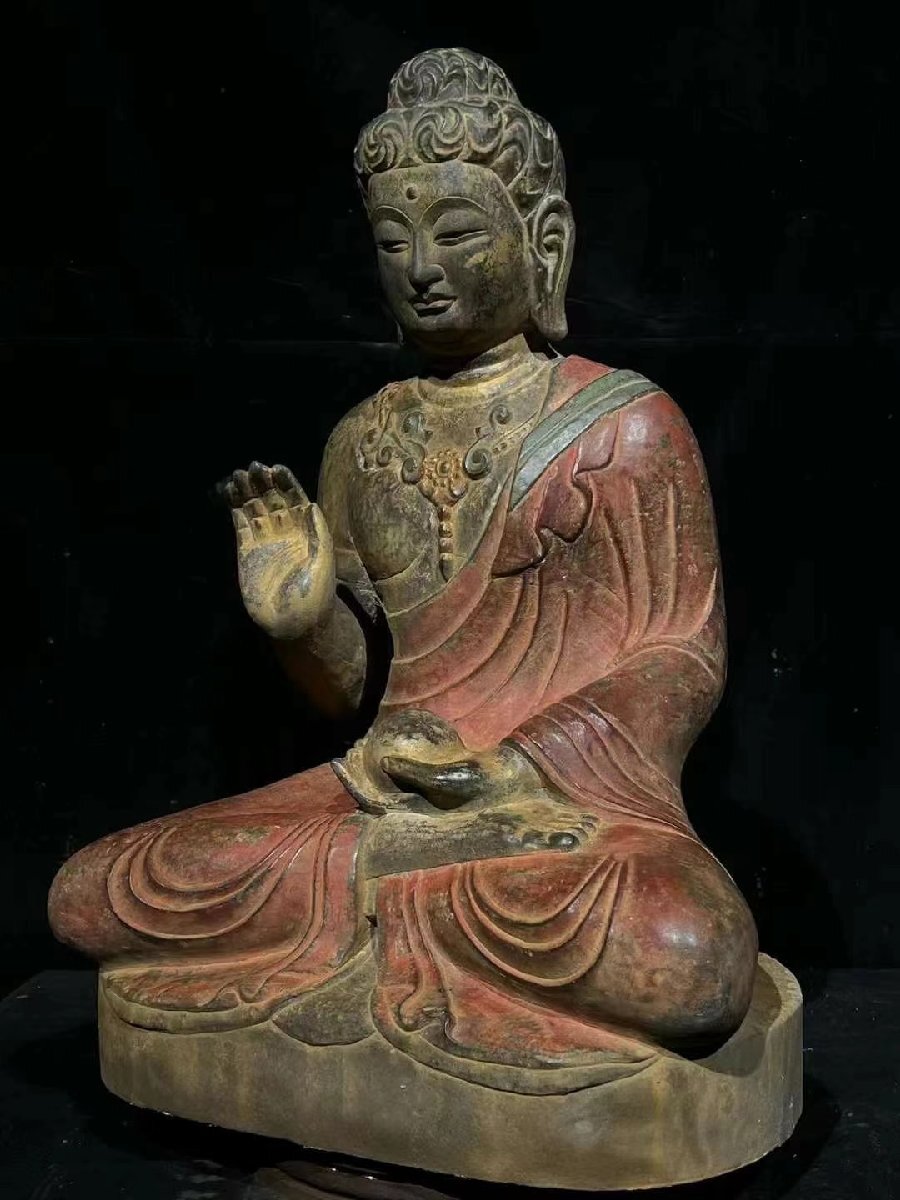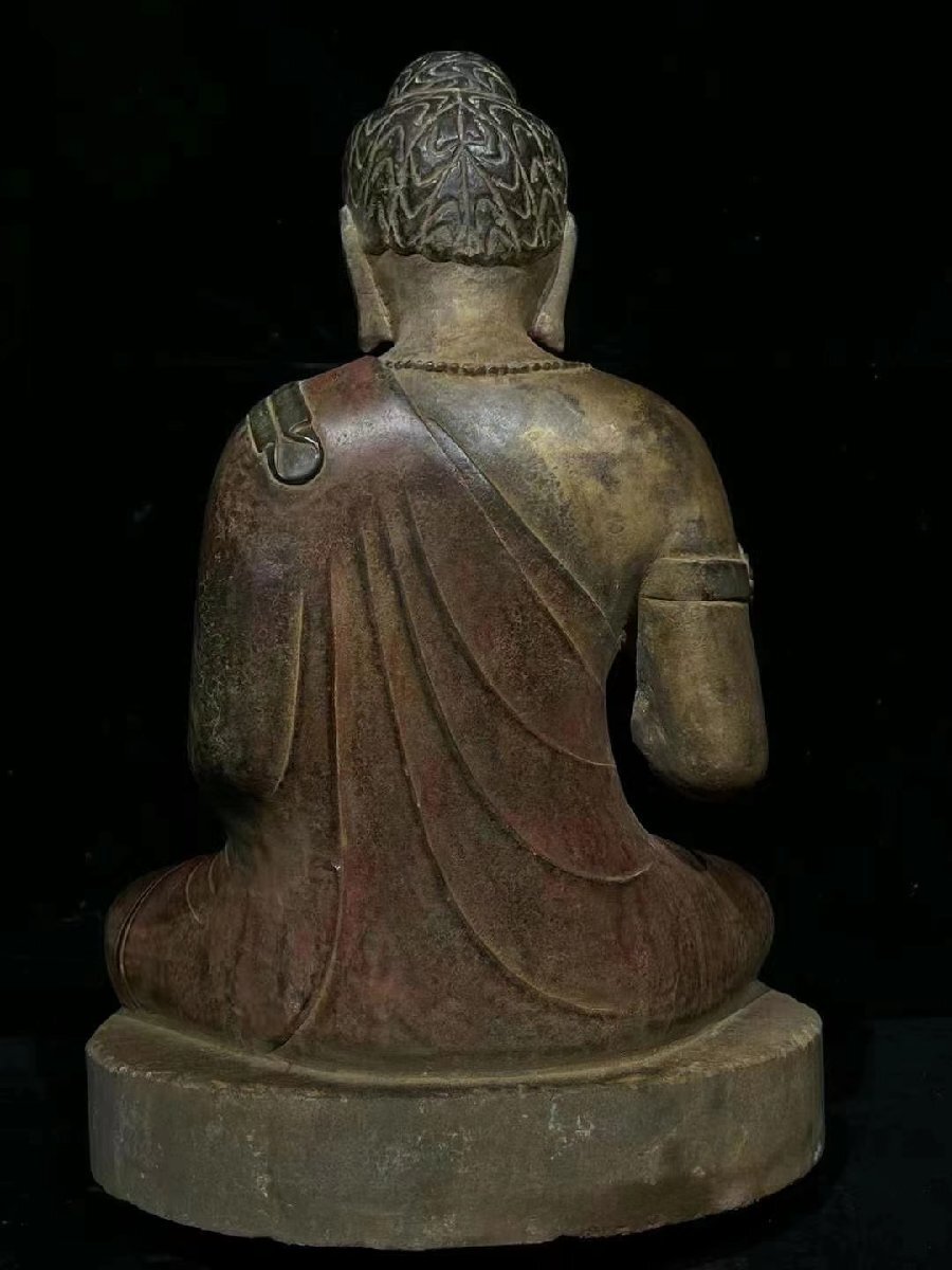 ■観心・時代旧蔵■B419北魏時代 青石彩絵仏坐像 青石細工彫刻★仏教古美術★仏像★廃寺買出品 高さ60cm横幅39cm奥行き27cm