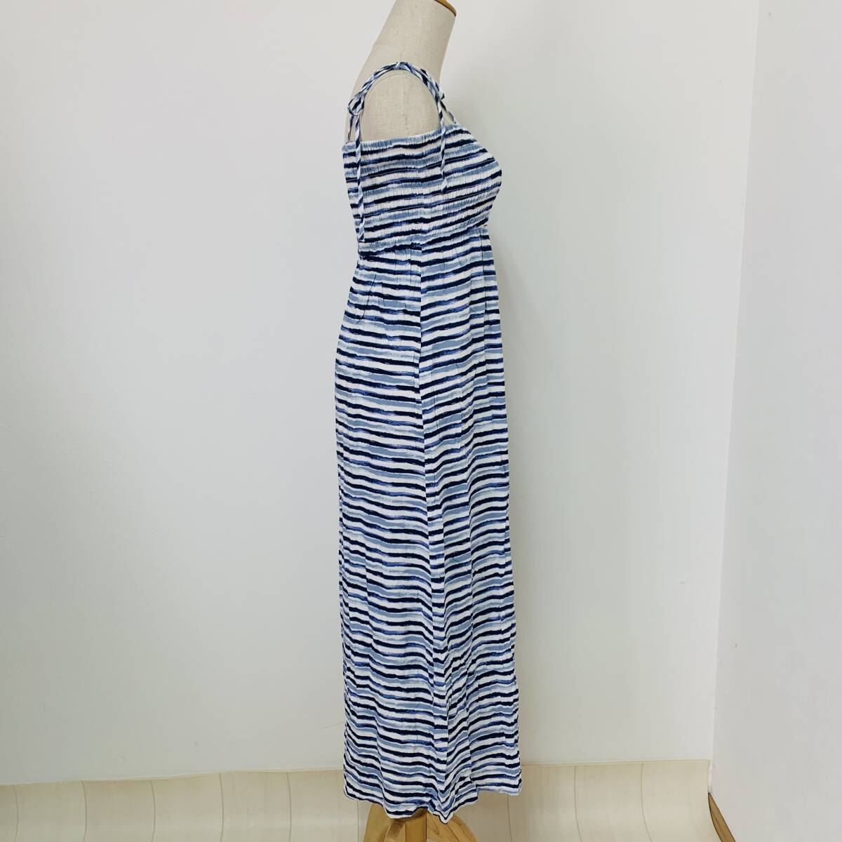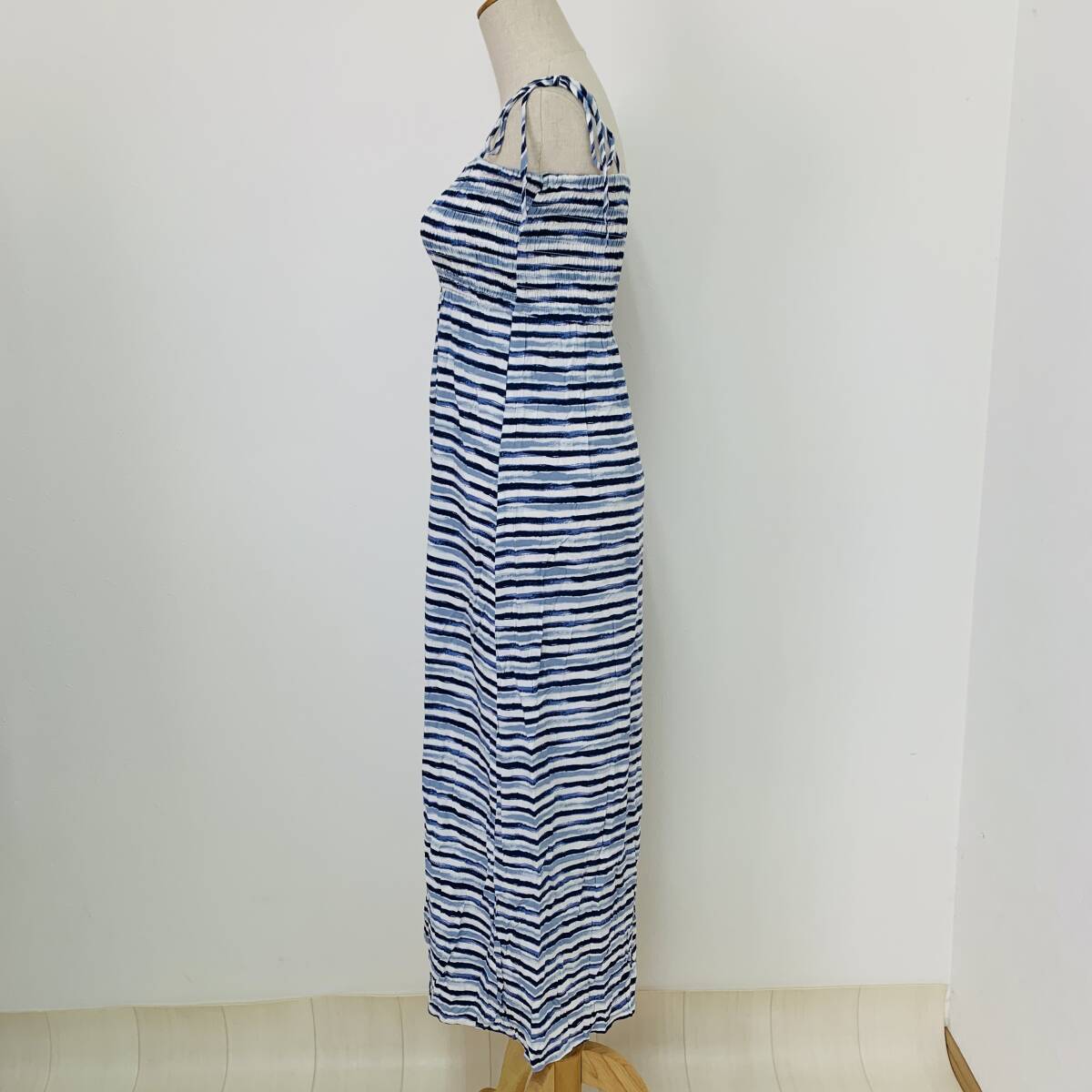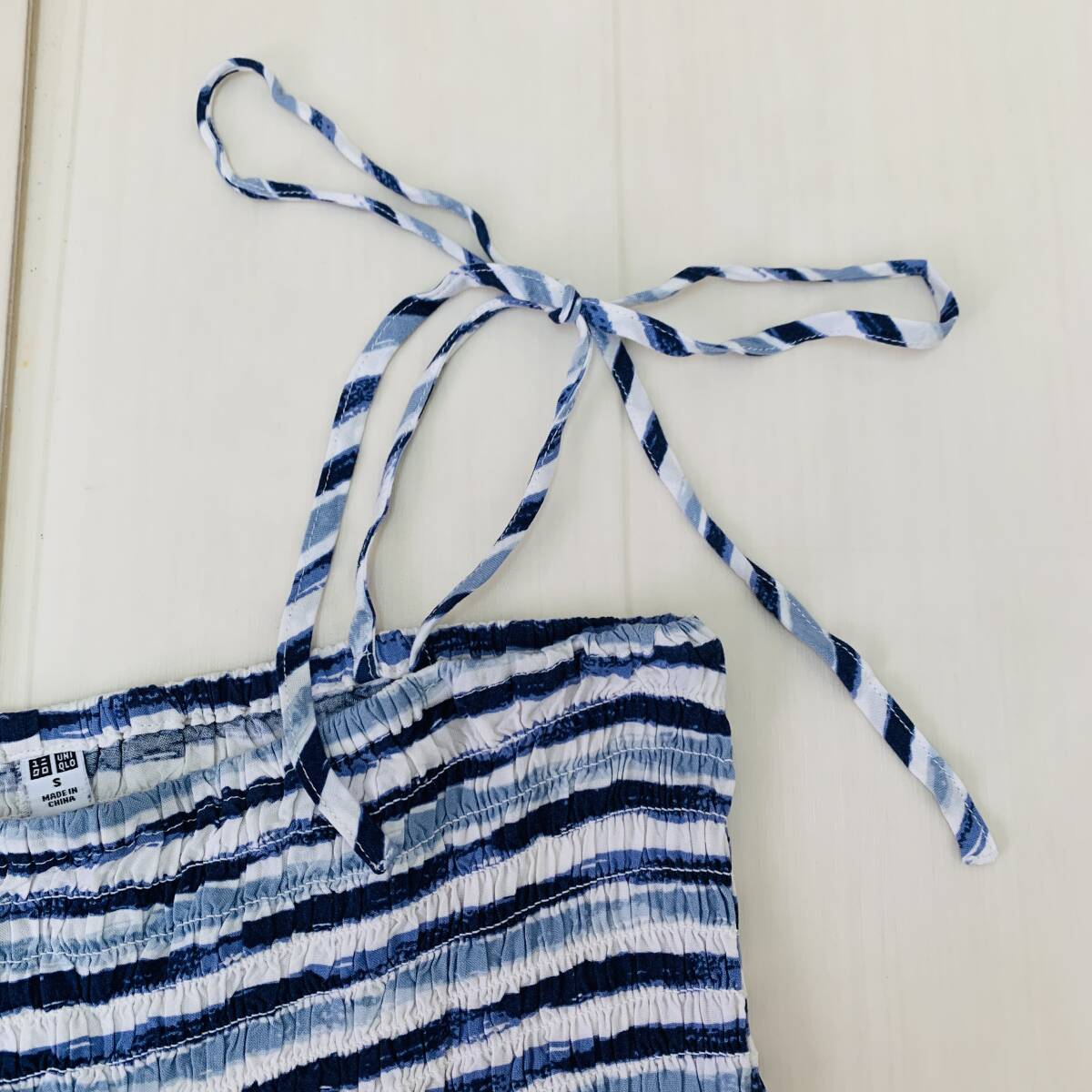 YH1785 UNIQLO ユニクロ レディース キャミソールワンピース ロング丈 ボーダー柄 胸元ゴム 薄手 ネイビー 紺 Sサイズ 万能 USED 古着