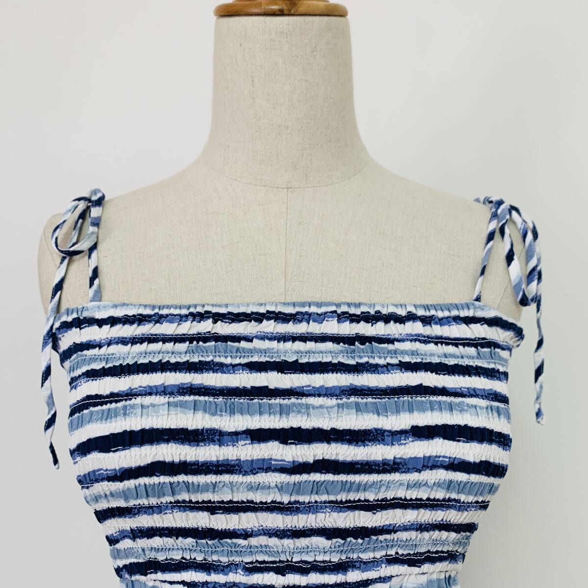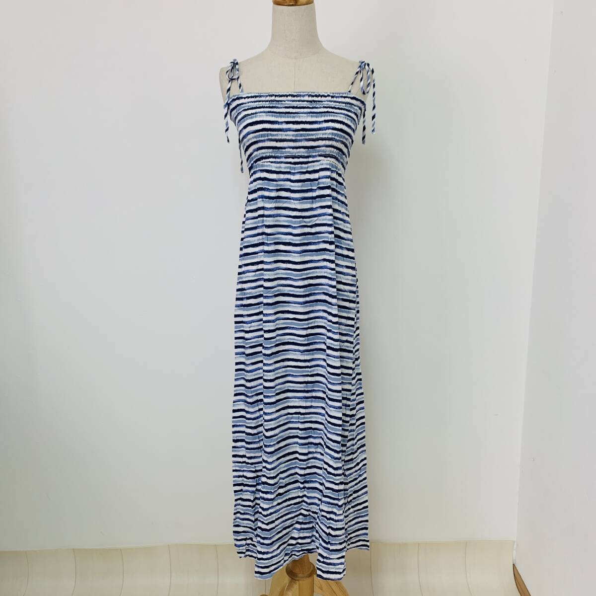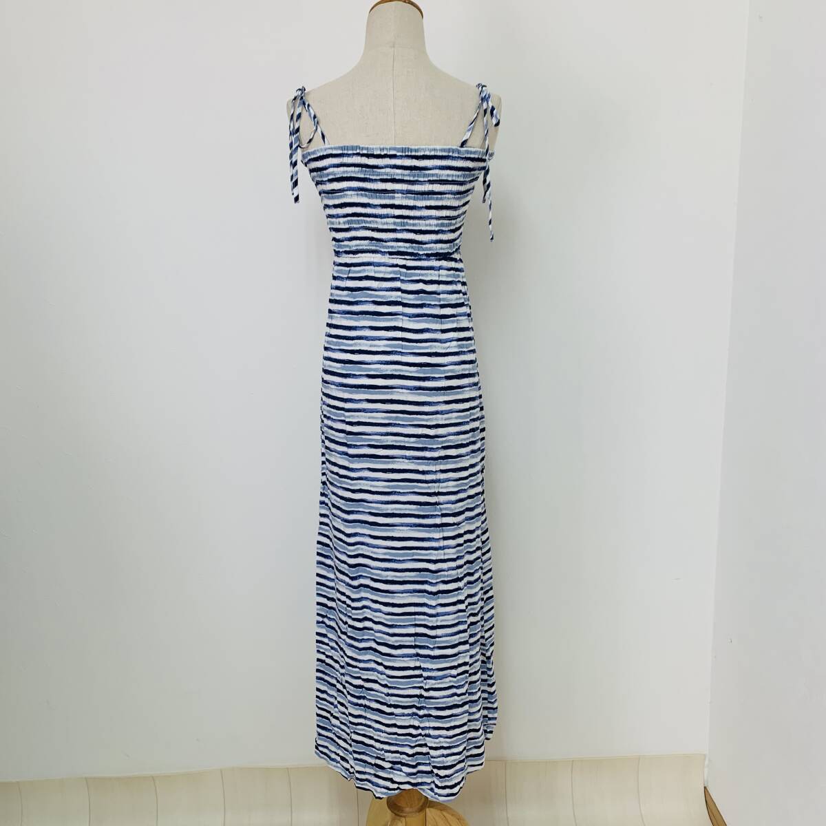 YH1785 UNIQLO ユニクロ レディース キャミソールワンピース ロング丈 ボーダー柄 胸元ゴム 薄手 ネイビー 紺 Sサイズ 万能 USED 古着