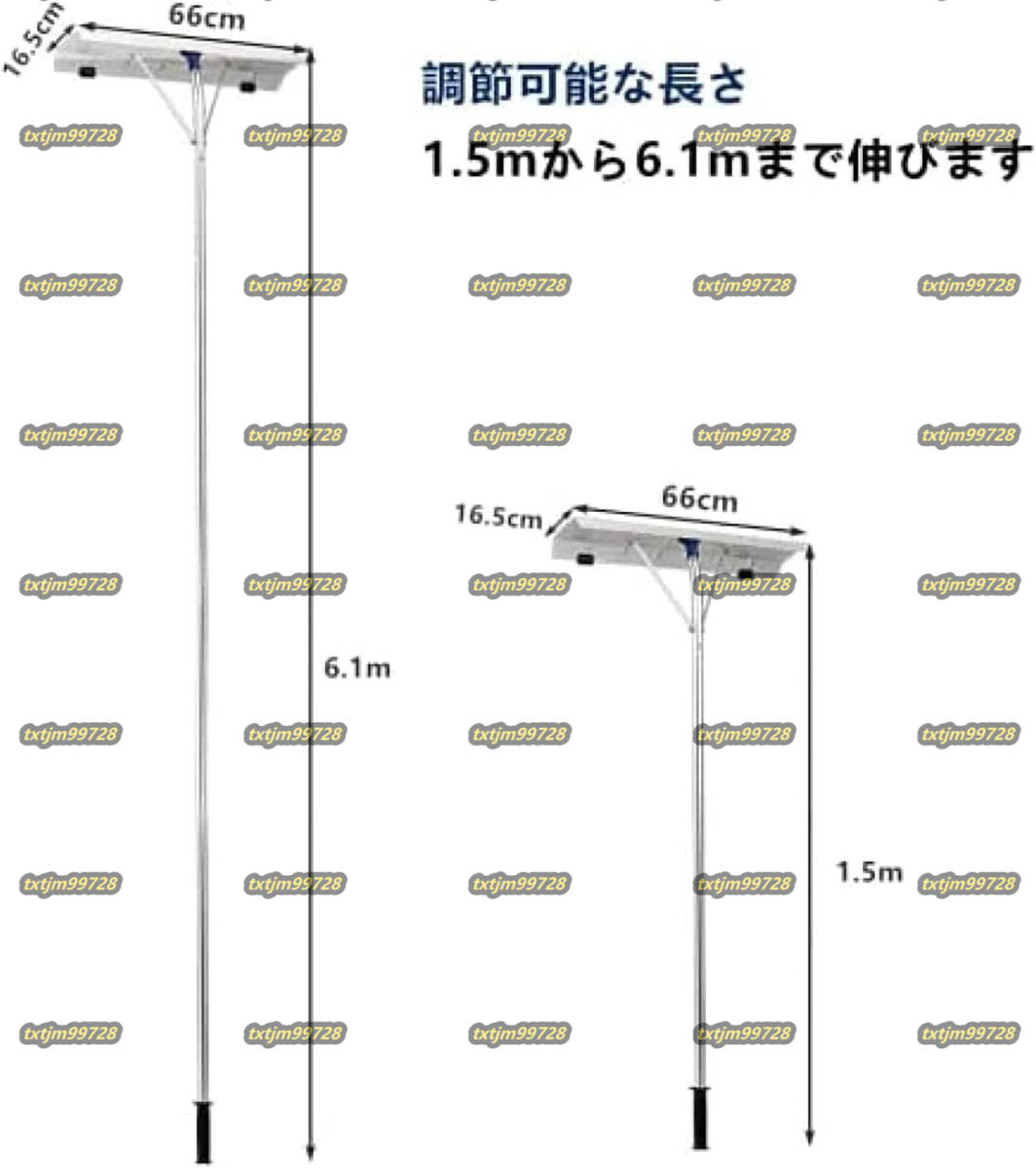 【長さ調整可能】サイズ全長:6.1m 中間パイプ(×4本)長さ:115cm 【重量】約2.2kg 、そして多くの小さな部品。製品の長さは、実際のニーズに応じて調整できます。取り外せるので、家にでも、車にでも場所を取らず簡単に収納できます。