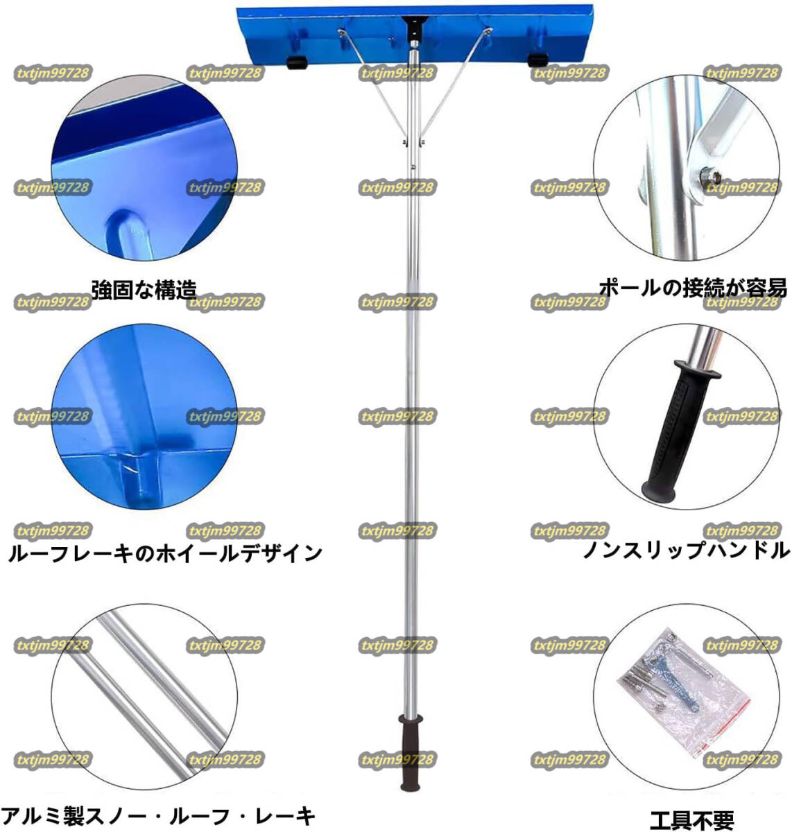 【組み立てが簡単】ルーフレーキは組み立てと分解が簡単です。 すべてのインストールプロセスはほんの数分で完了し、完璧なスノーレーキを手に入れることができます。 スノーレーキは、屋根から雪、濡れた葉、その他の破片を取り除くための理想的なツールです。