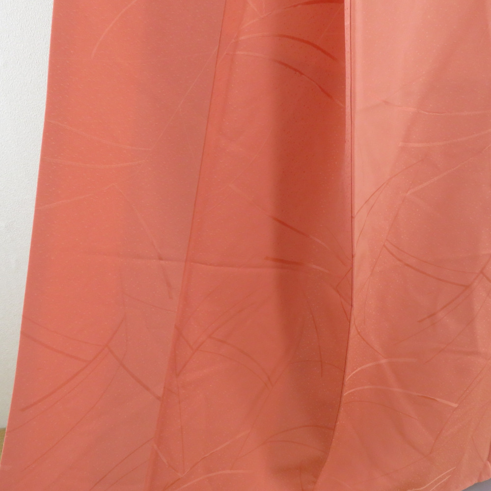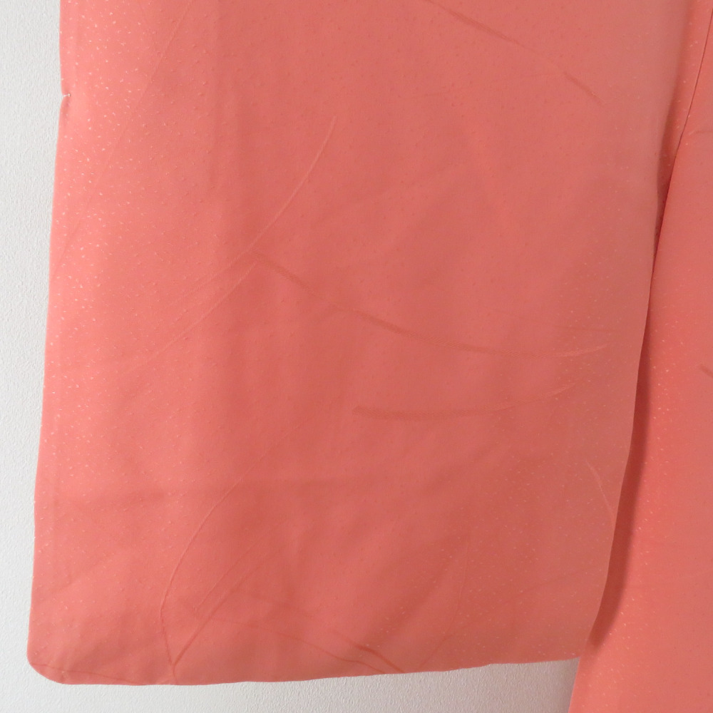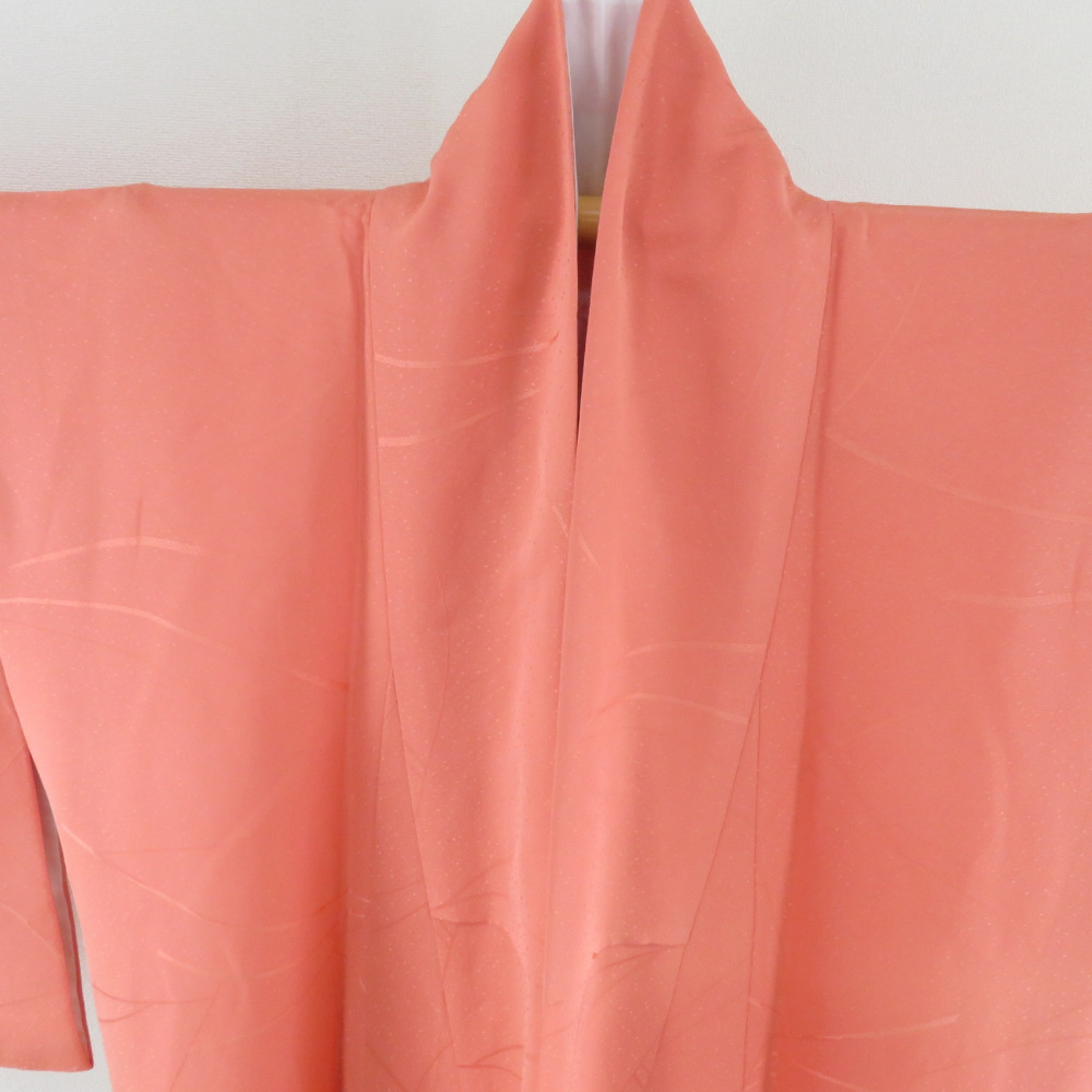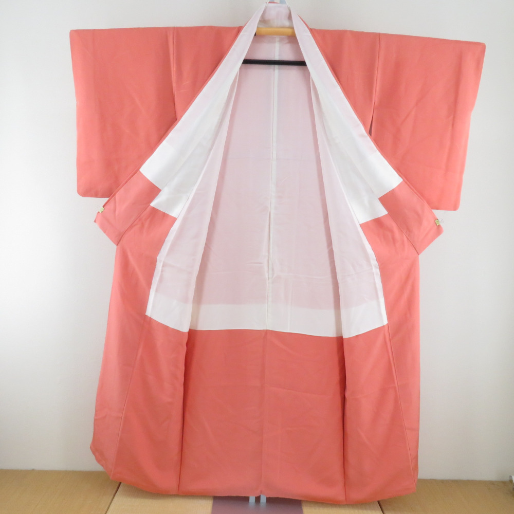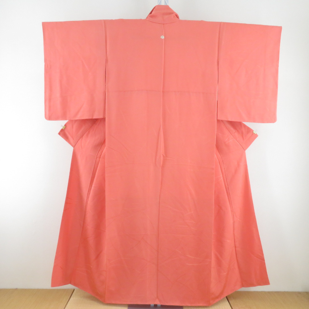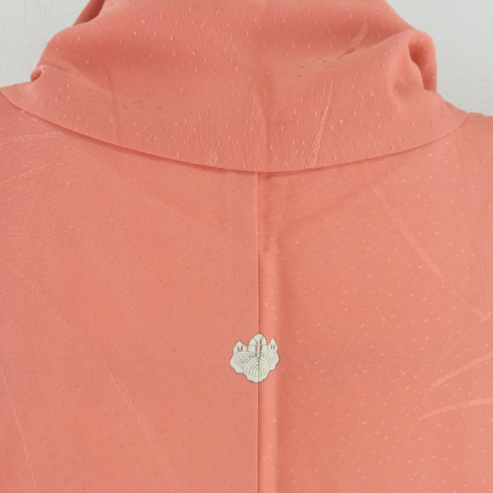 | 色無地 袷 広衿 橙色 正絹 一つ紋 五三桐紋 仕立て上がり着物 身丈152cm |