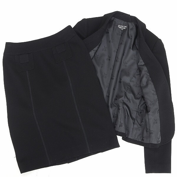 | ◆SONIA RYKIEL ソニアリキエル 裏地さくらんぼ柄 ストレッチ 2釦 ジャケット&スカート スーツ セットアップ 黒 ブラック 38 | |