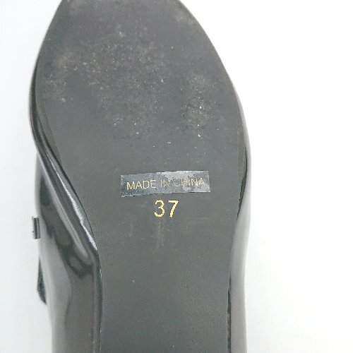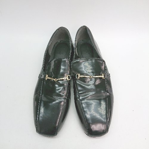 ◇ natalia moreno ナタリア・モレノ スクエアトゥ エナメル ビット付き ローファー サイズ37 ブラック レディース E