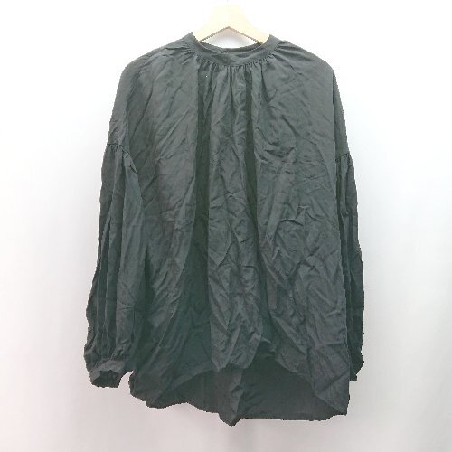 ◇ BABYLONE カジュアル シンプル ギャザー モノトーン 長袖 シャツ カットソー サイズF ブラック レディース E