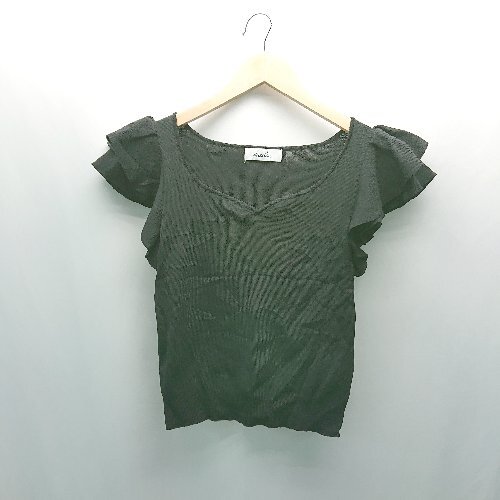 ◇ dazzlin? ダズリン シンプル 無地 フリル ガーリー 半袖 カットソー サイズF ブラック レディース E