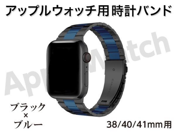 Apple watch ステンレス 時計ベルト 時計バンド 38mm / 40mm / 41mm 用 22 × 18mm幅 ブラック × ブルー