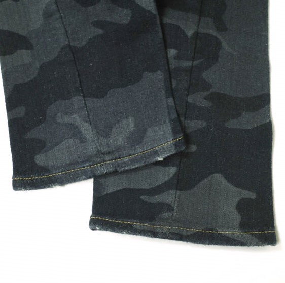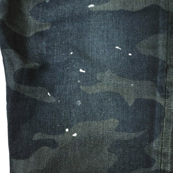 カモフラージュ柄の生地には、さりげなく抜け感のあるペンキ散らしが施されています。
