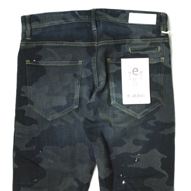 新品 e JEANS イージーンズ e-802 TWIST 岡山児島 ペイントカモフラージュジョグデニムパンツ 173204301 1 INDIGO 定価35,200円 g17396