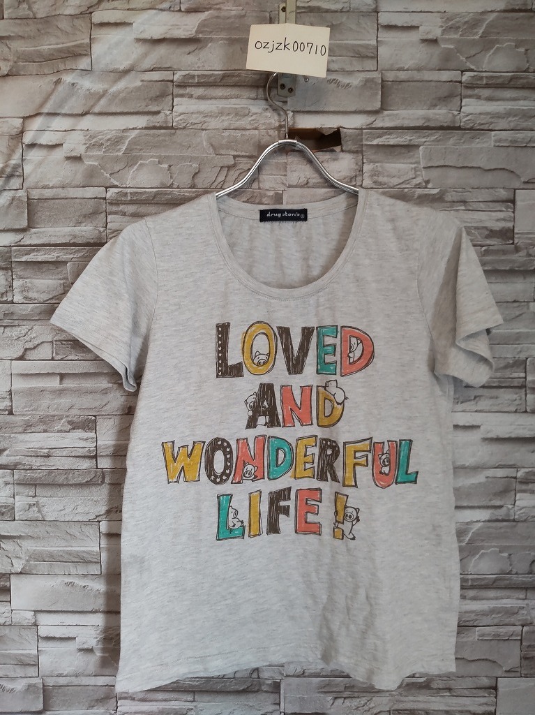 women's H482 ドラッグストアーズ drug store's メッセージ プリント 半袖Tシャツ 2 グレー