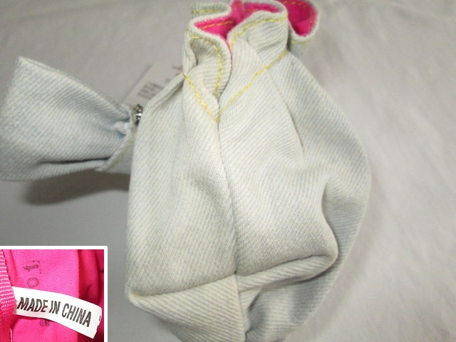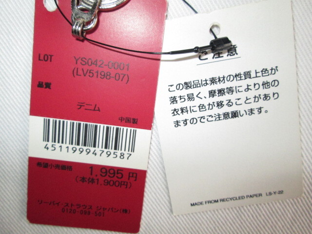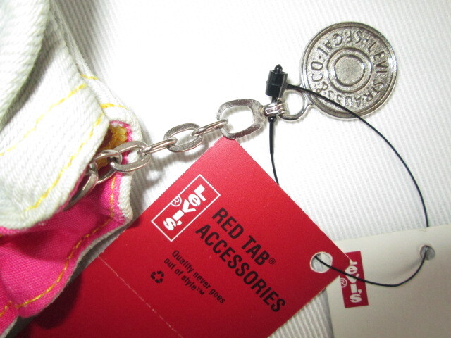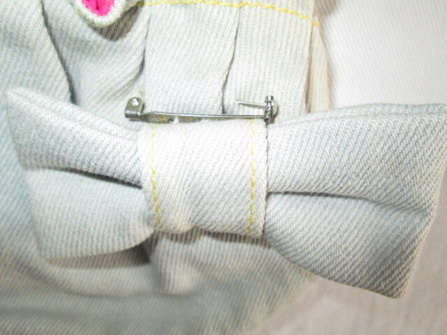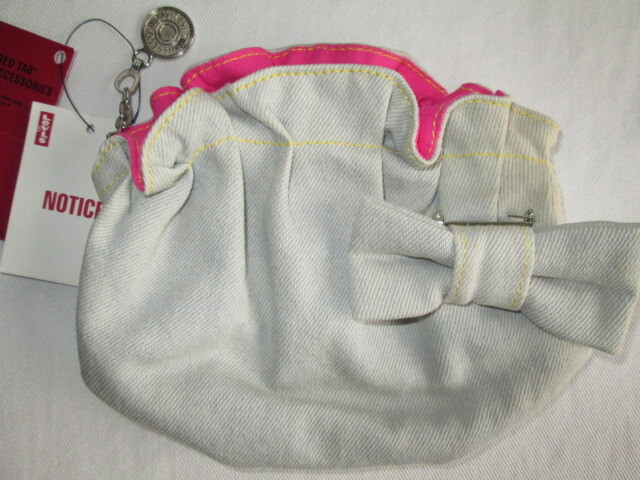 ★ジッパーの金具部分はリーバイスのボタン型のデザイン、デニムのリボンの飾りが安全ピンでついています。