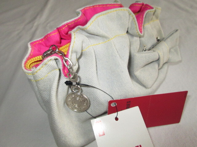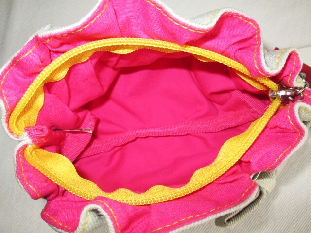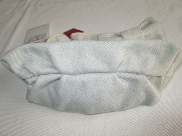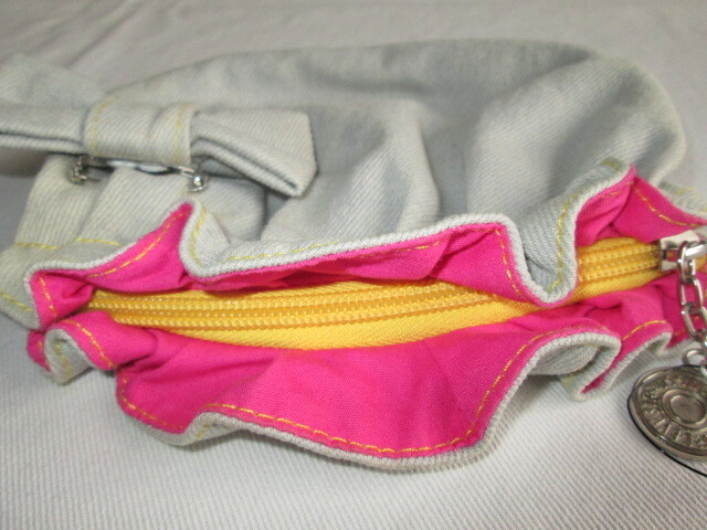 ★【色】色落ちした薄いデニム色×ピンク色【裏地の色】×黄色【ジッパー部分の色】