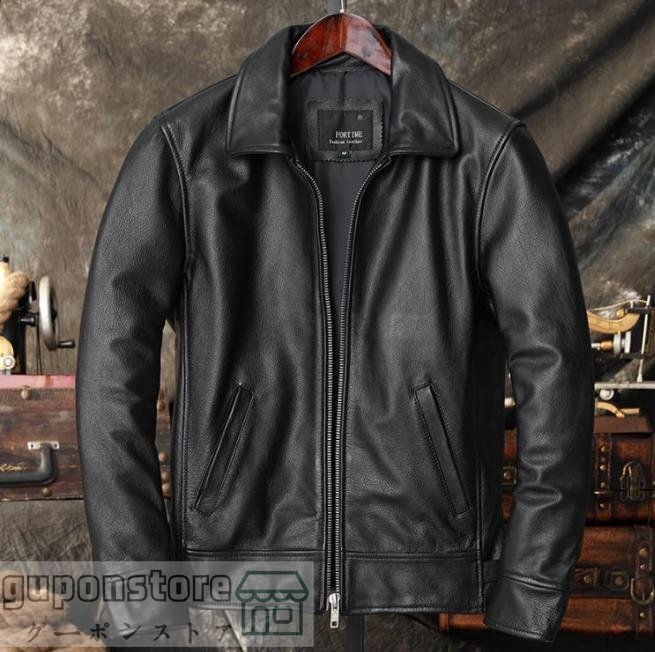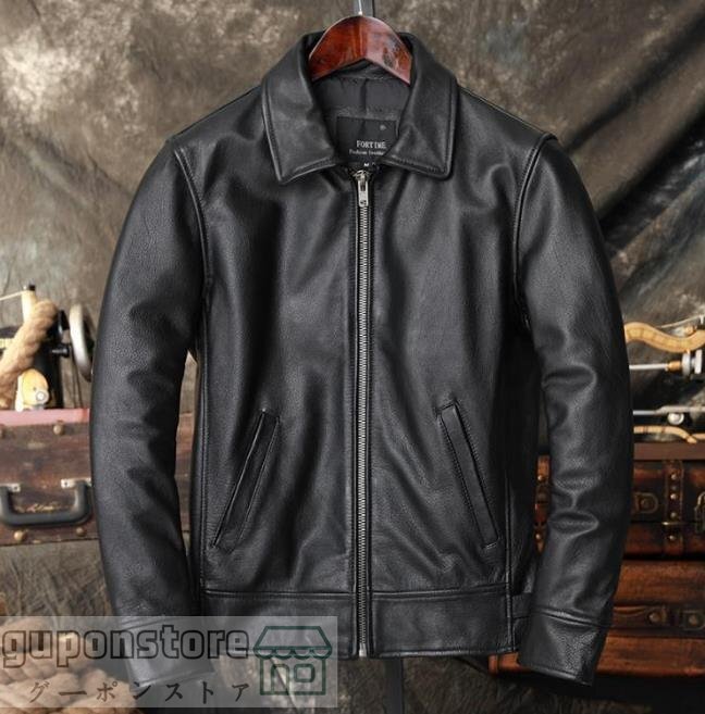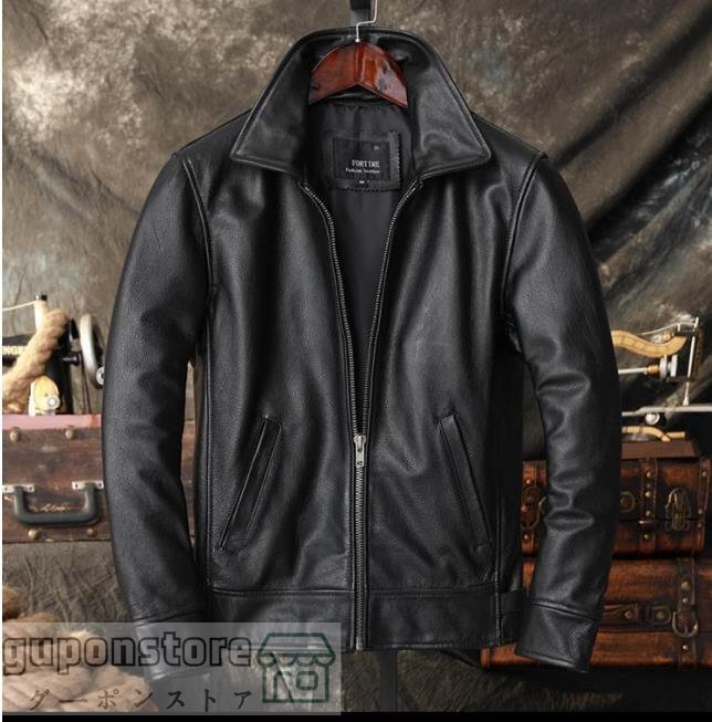 人気推薦★本革 メンズファッション 牛革 本革ジャン シンプル レザージャケット 高品質オートバイの防風コート XLサイズ