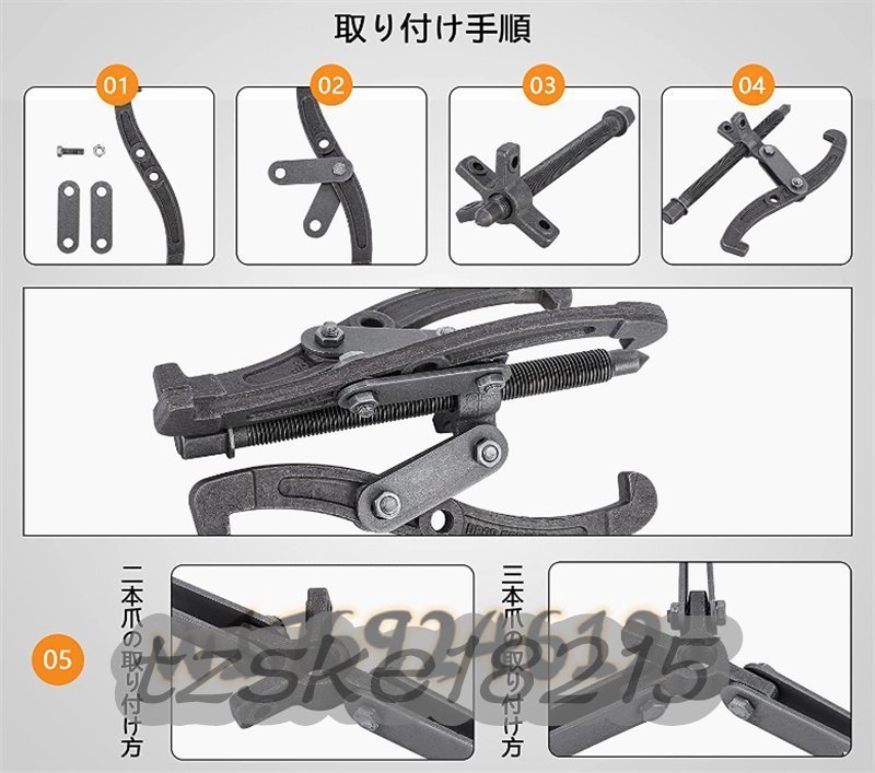 特売!ギアプーラー 2本爪/3本爪変更可能 適用外径:200mm迄 高硬度 プーリ抜き ギア 外し プーラー
