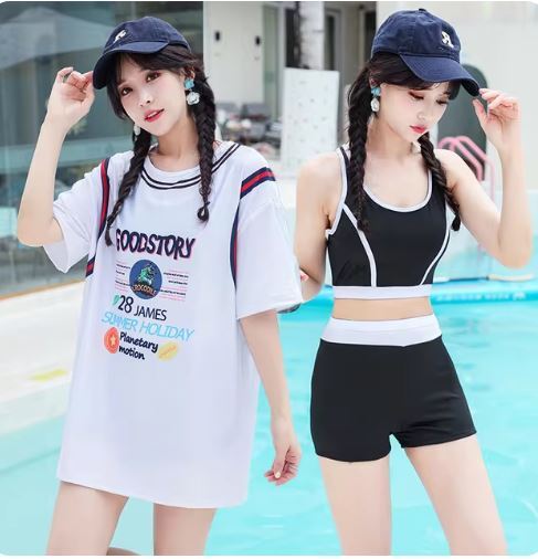 【Lサイズ 3点セット】スリットベリーカバー水着,スリミング,フラットアングル,スポーツ,学生,大型,温泉,新品 ※色: 8238黒