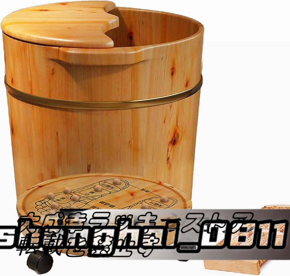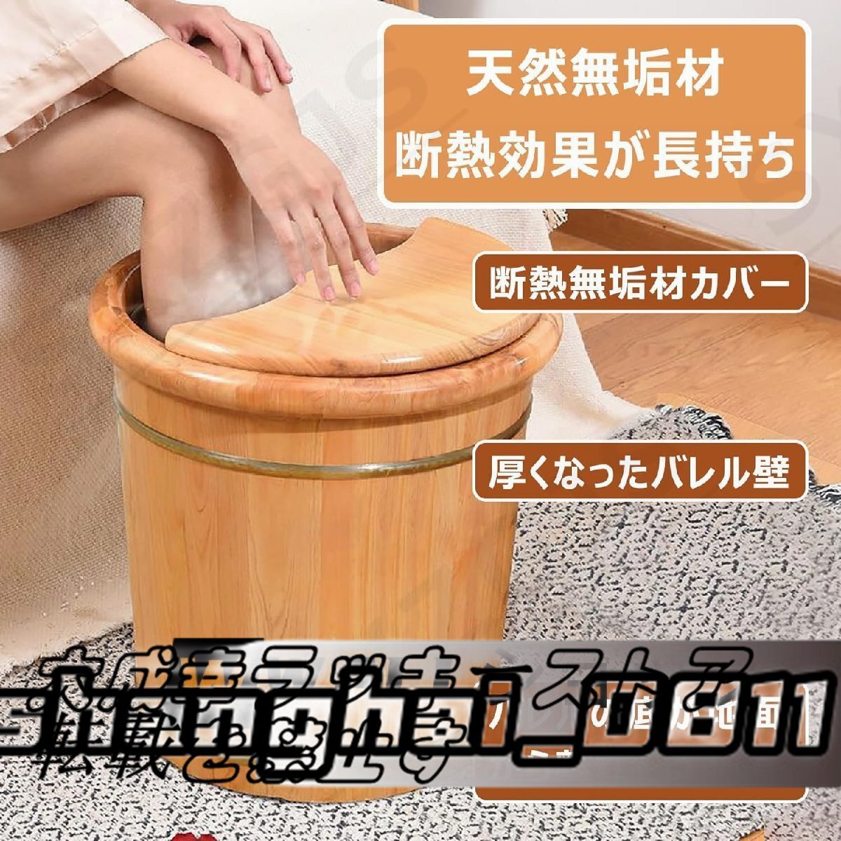 木製 フットバス バケツ 蓋付き 排水口つき キャスター 保温フットバス 家庭用 マッサージ フットケア 耐久性 足専用 疲労軽減