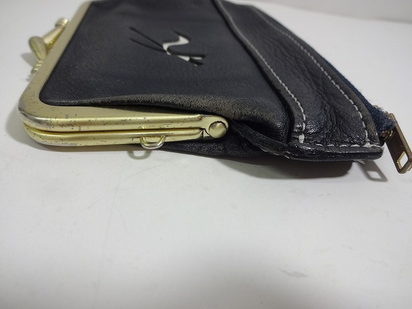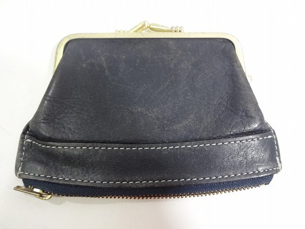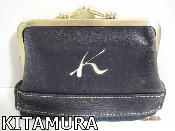 | X4H086◆本物◆ キタムラ KITAMURA 本革レザー ブラック がま口&ファスナー 小銭入れ コインケース 財布 | ||