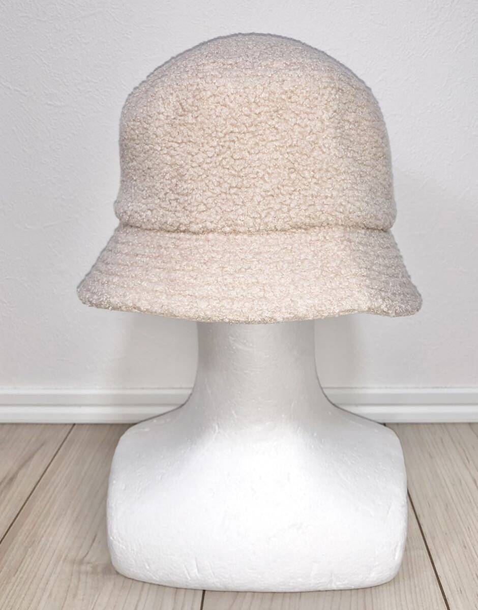 長すぎない毛足のボア素材を使用した、モコモコが可愛いボアバケットハットになります。