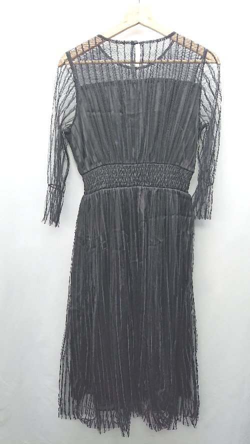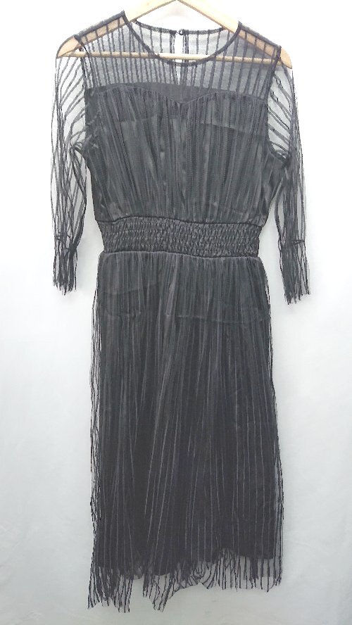 ◇ POURVOUS ストライプ柄 シースルー 長袖 ロング丈 ワンピース サイズM ブラック レディース E