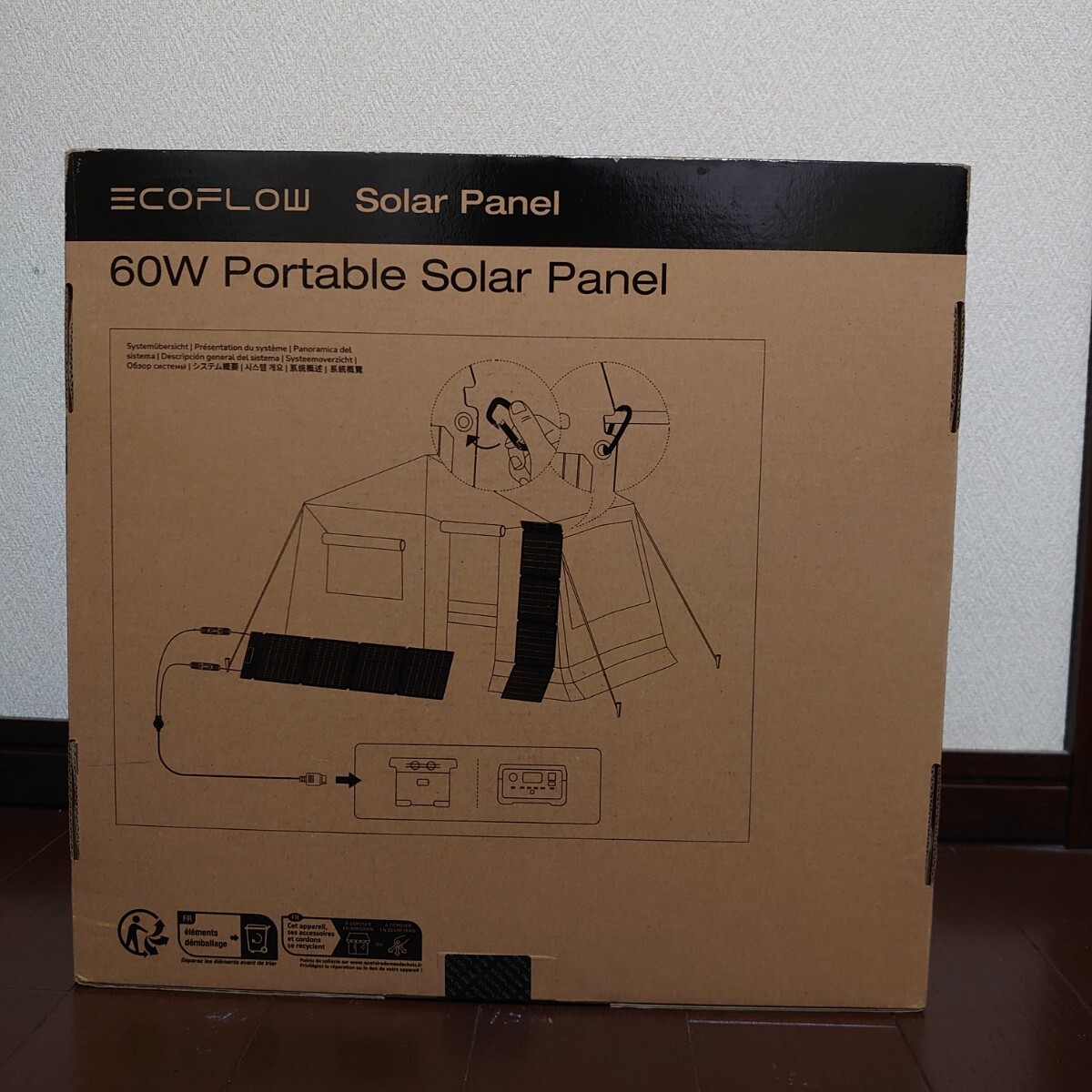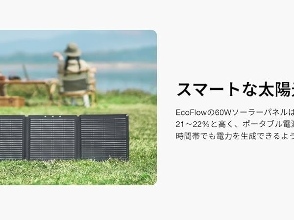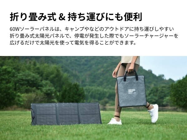 EcoFlow 60Wソーラーパネルは折り畳み可能で持ち運びに便利な設計となっており、