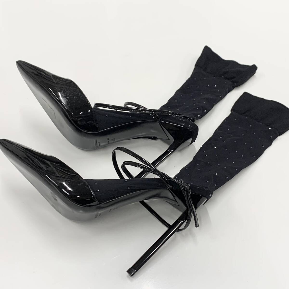 1288 サンローラン パテント ラインストーン ソックス付き パンプス ブラック