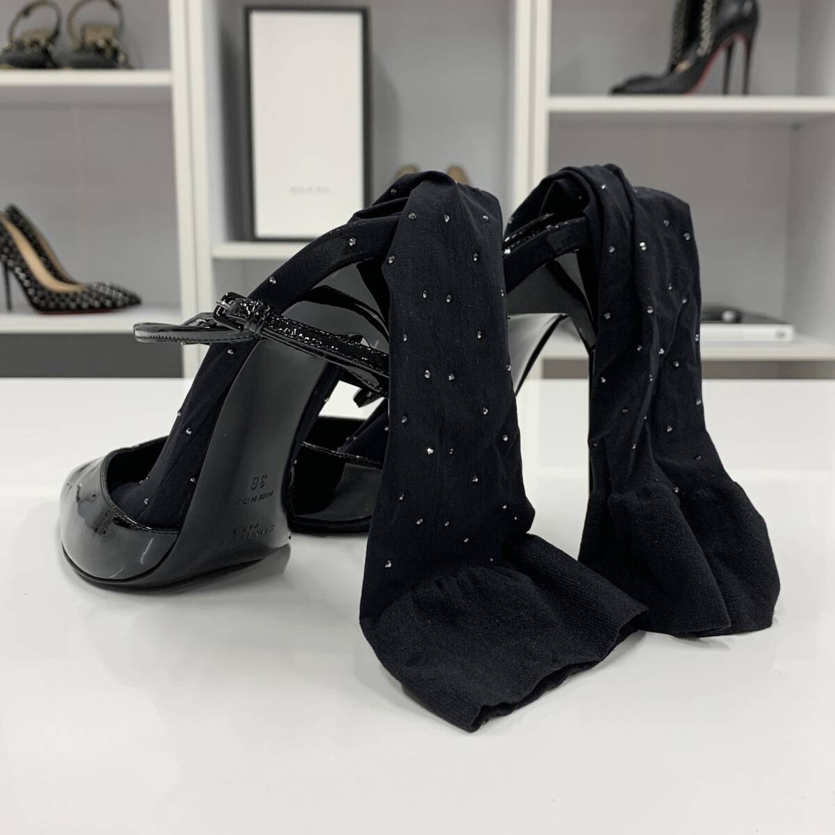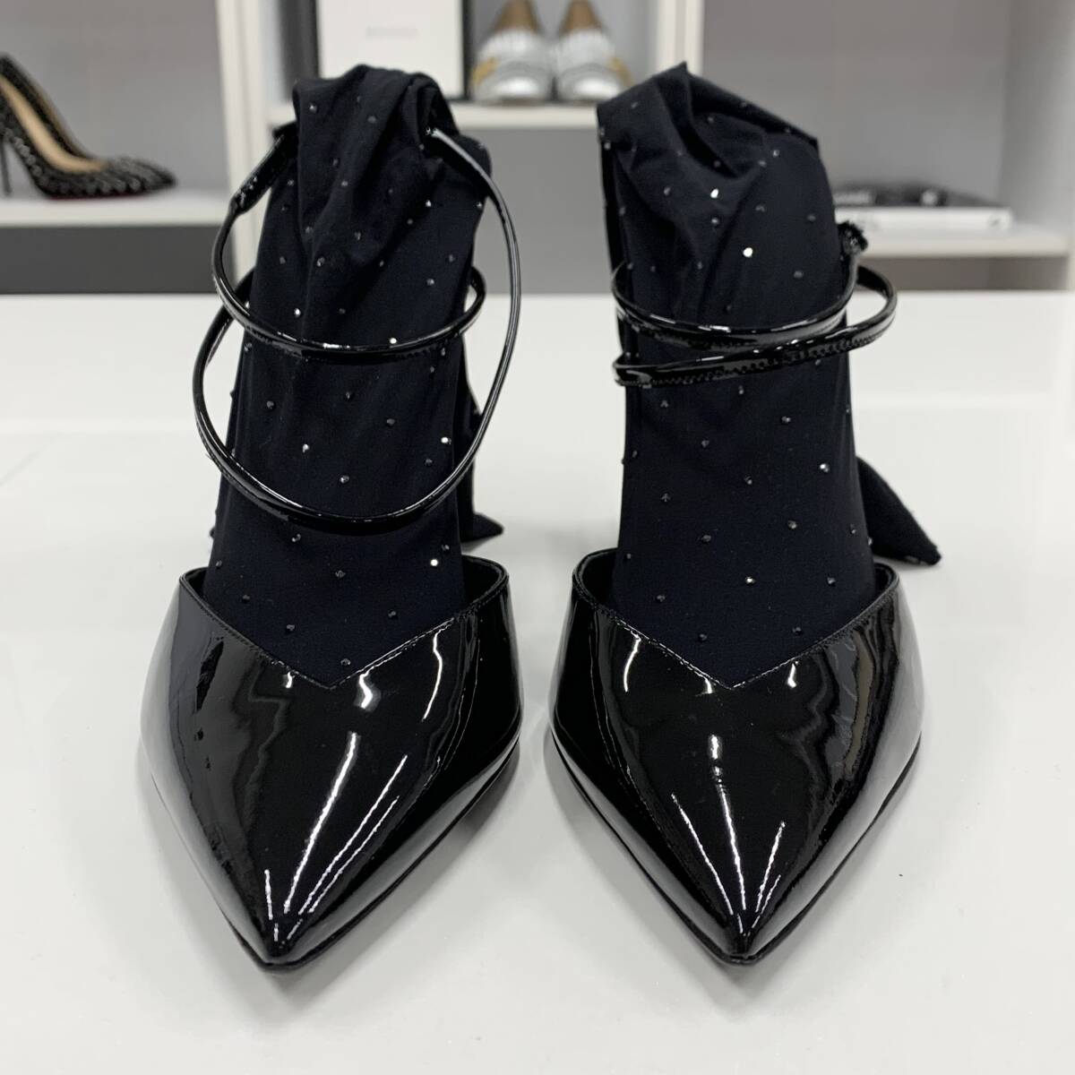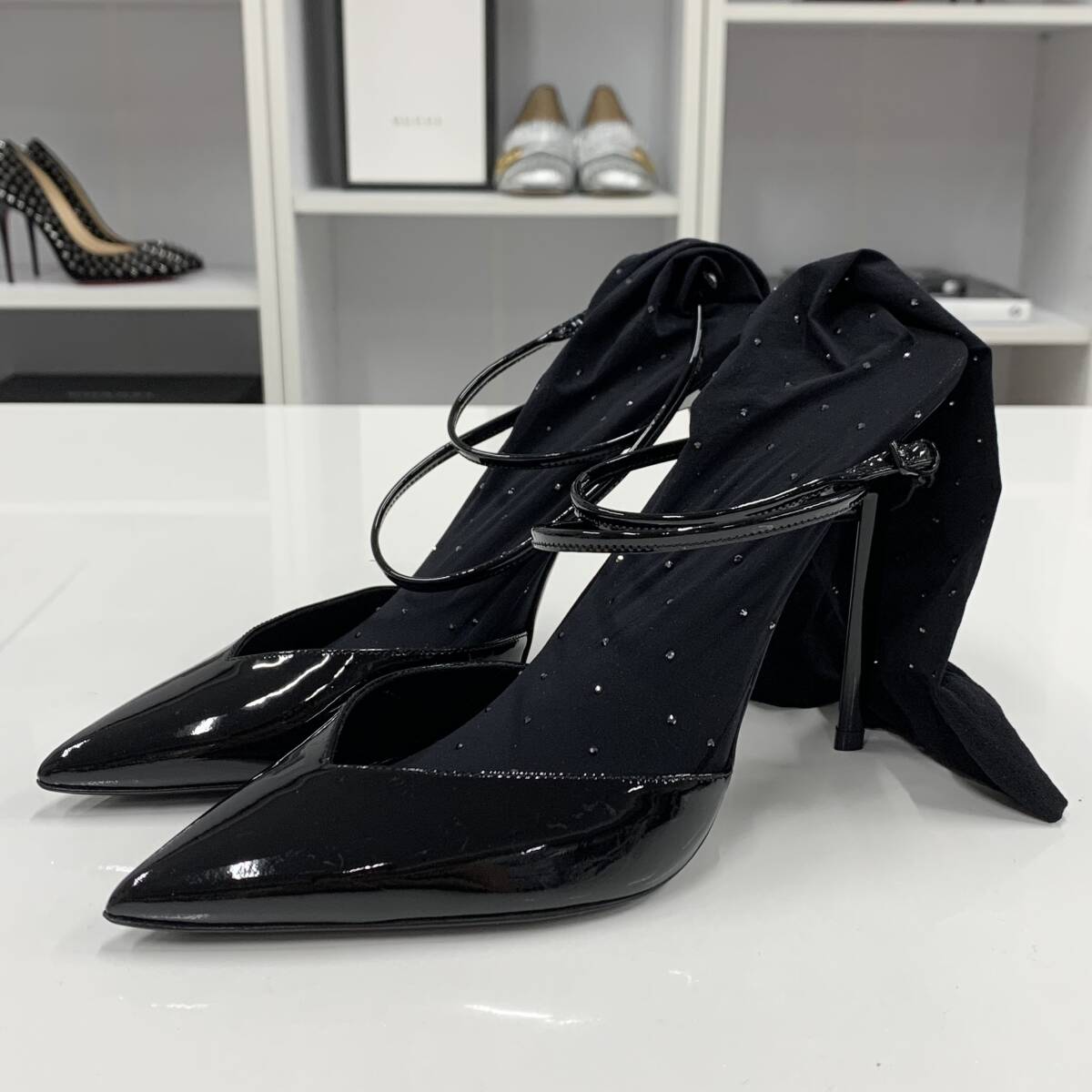 サンローラン パテント ラインストーン ソックス付き パンプス ブラック