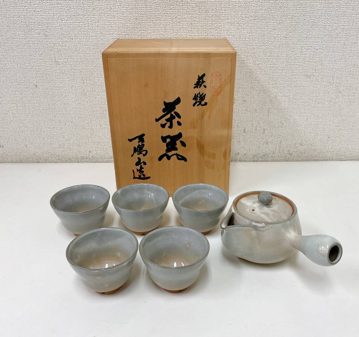 【萩焼 茶碗揃 天鵬山】椿窯/新見島土/和食器/共箱り/急須/湯呑/A67-648