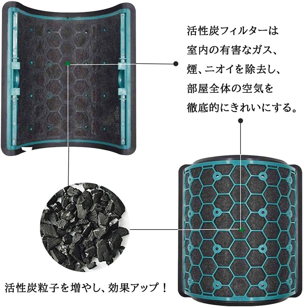 【材質】360°超細いガラス繊維HEPAフィルターで、アップグレードされた活性炭