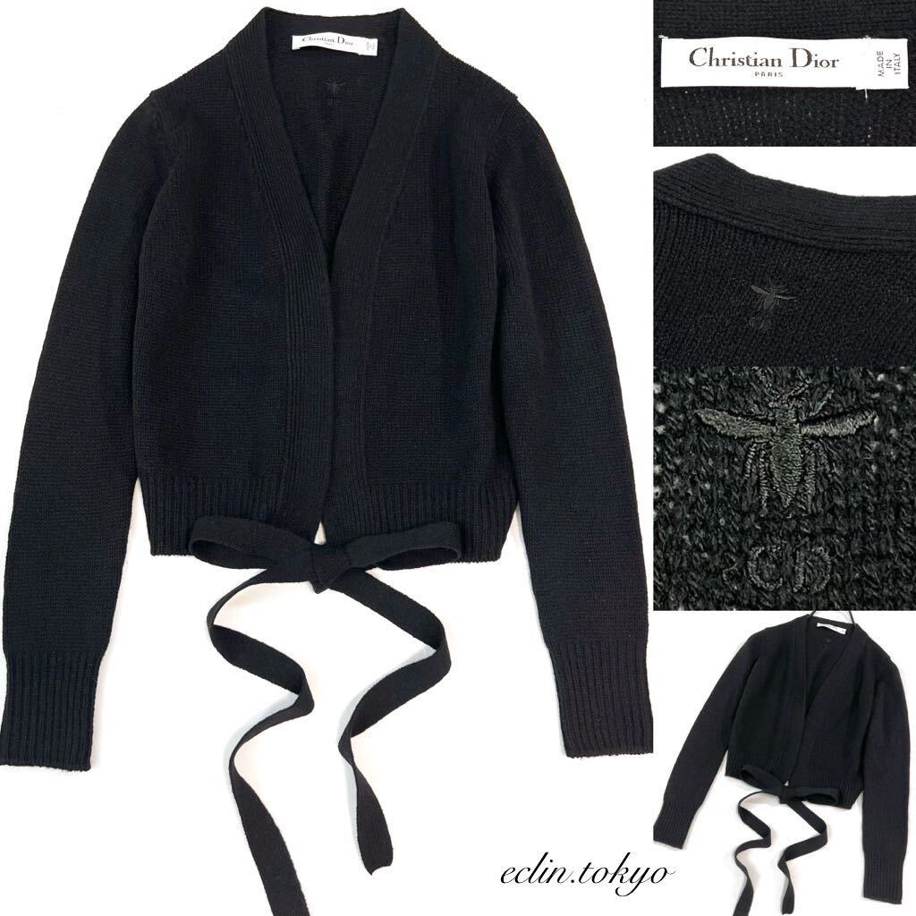 最高級カシミヤ100% BEE刺繍 リボン カーディガン F34