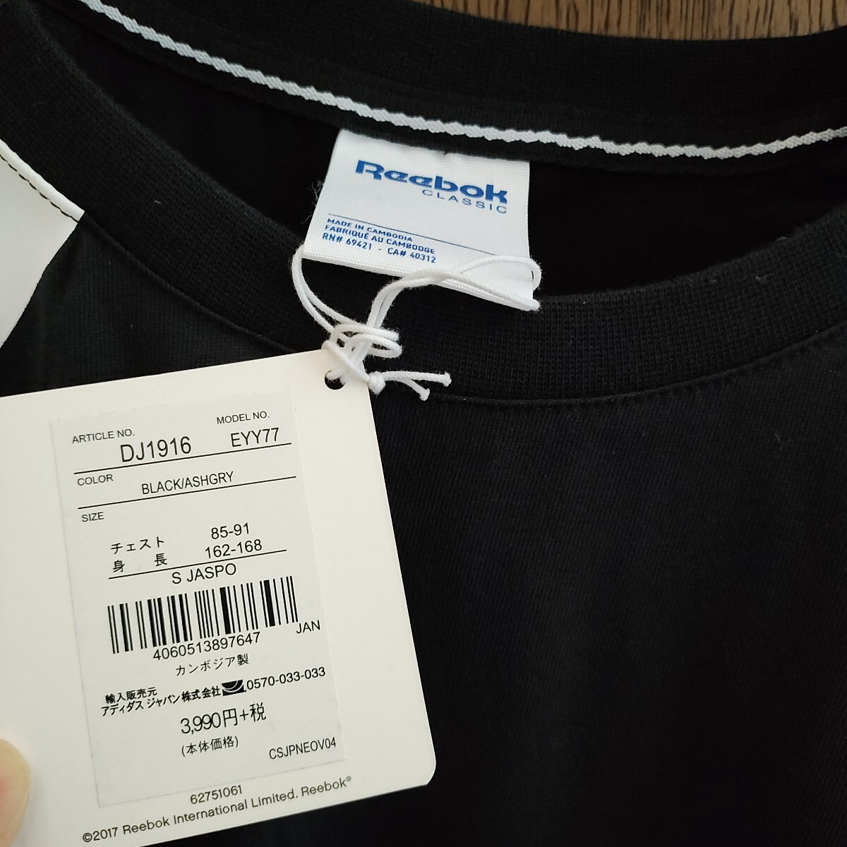 リーボックのカットソーです。タグ付き未使用品。サイズS、カラーはブラックです。