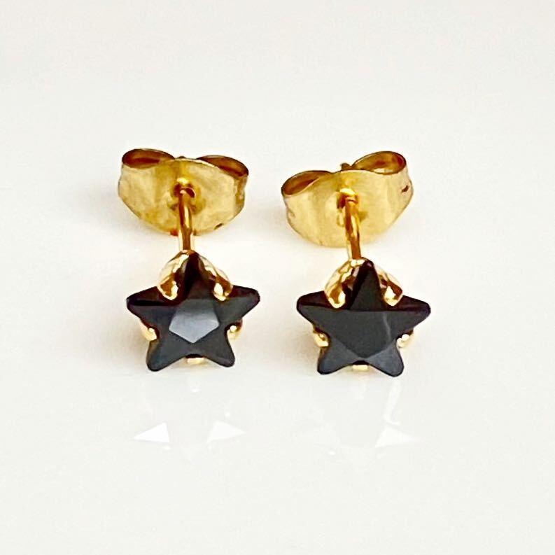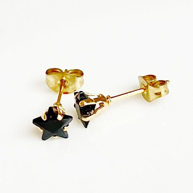 シンプルな星形AAACZブラックダイヤモンドのゴールドピアスです。ユニセックスデザインで、どんなファッションにもよく合うお品です。