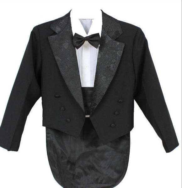 100新品結婚式発表会男の子フォーマルタキシード5点燕尾服黒