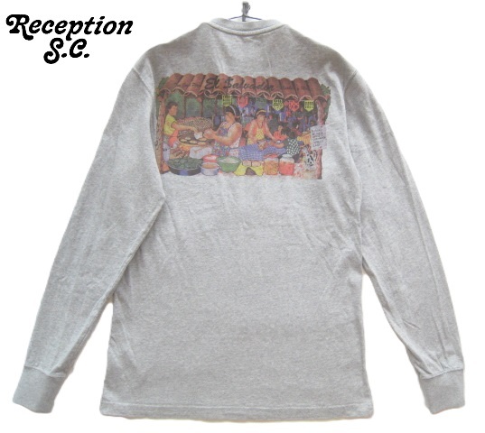 美品ポルトガル製!!レセプション Reception S.C.*TWO GUYS LSプリント 長袖Tシャツ XS 実寸S グレー 定価1.5万