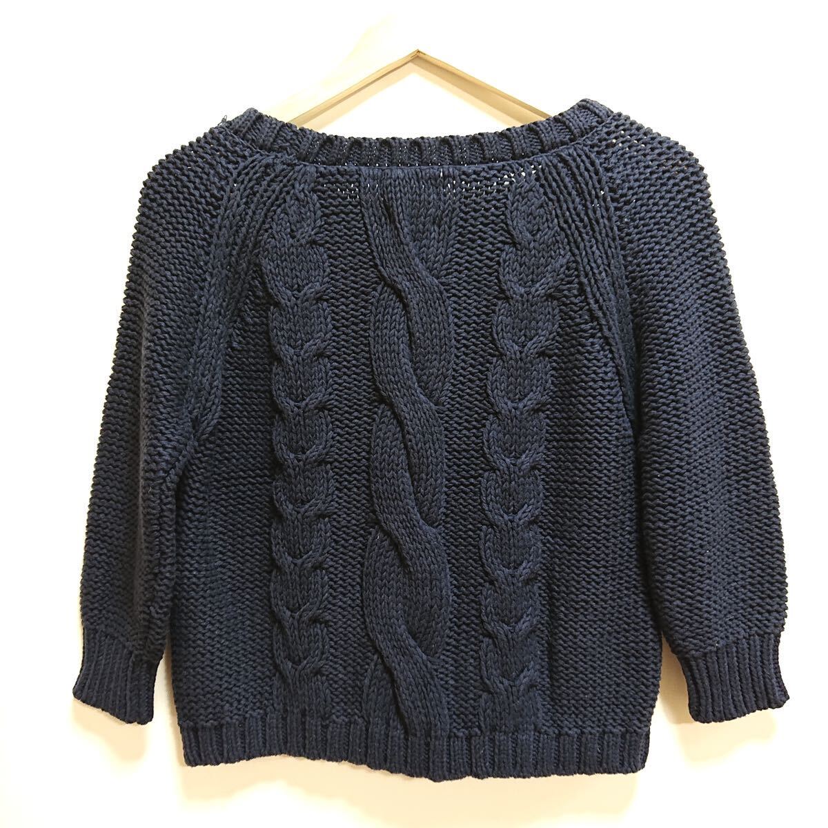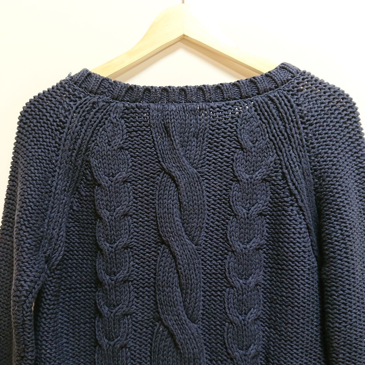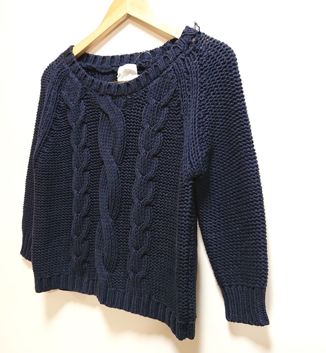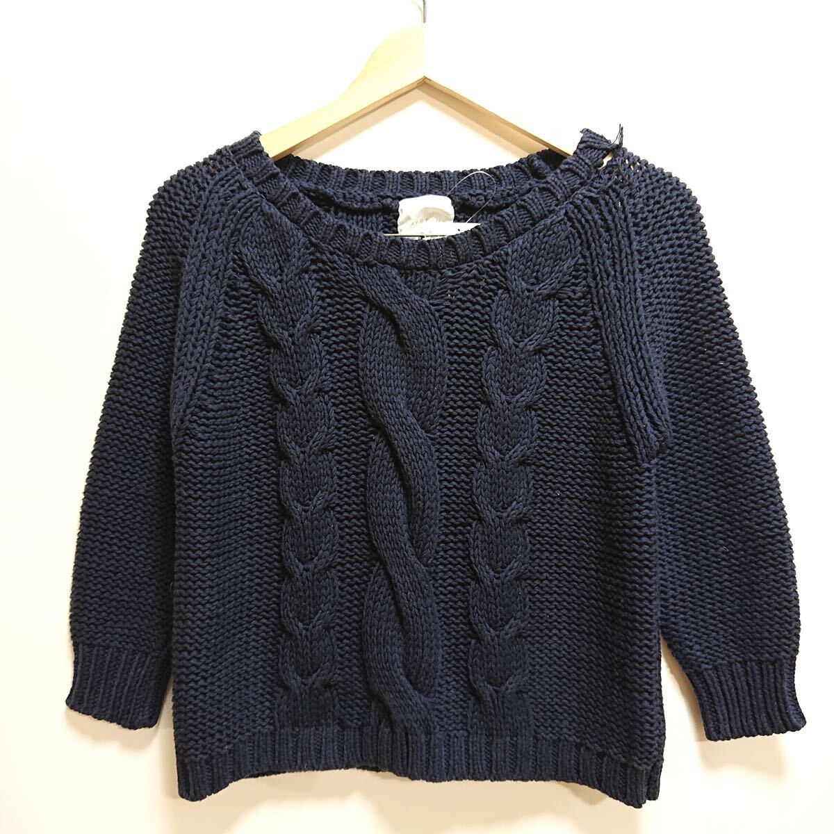 H9937gg Ray BEAMS(レイ ビームス) サイズS〜M位 セーター ネイビー レディース ショート丈 ニットローゲージ ケーブル編み おしゃれ