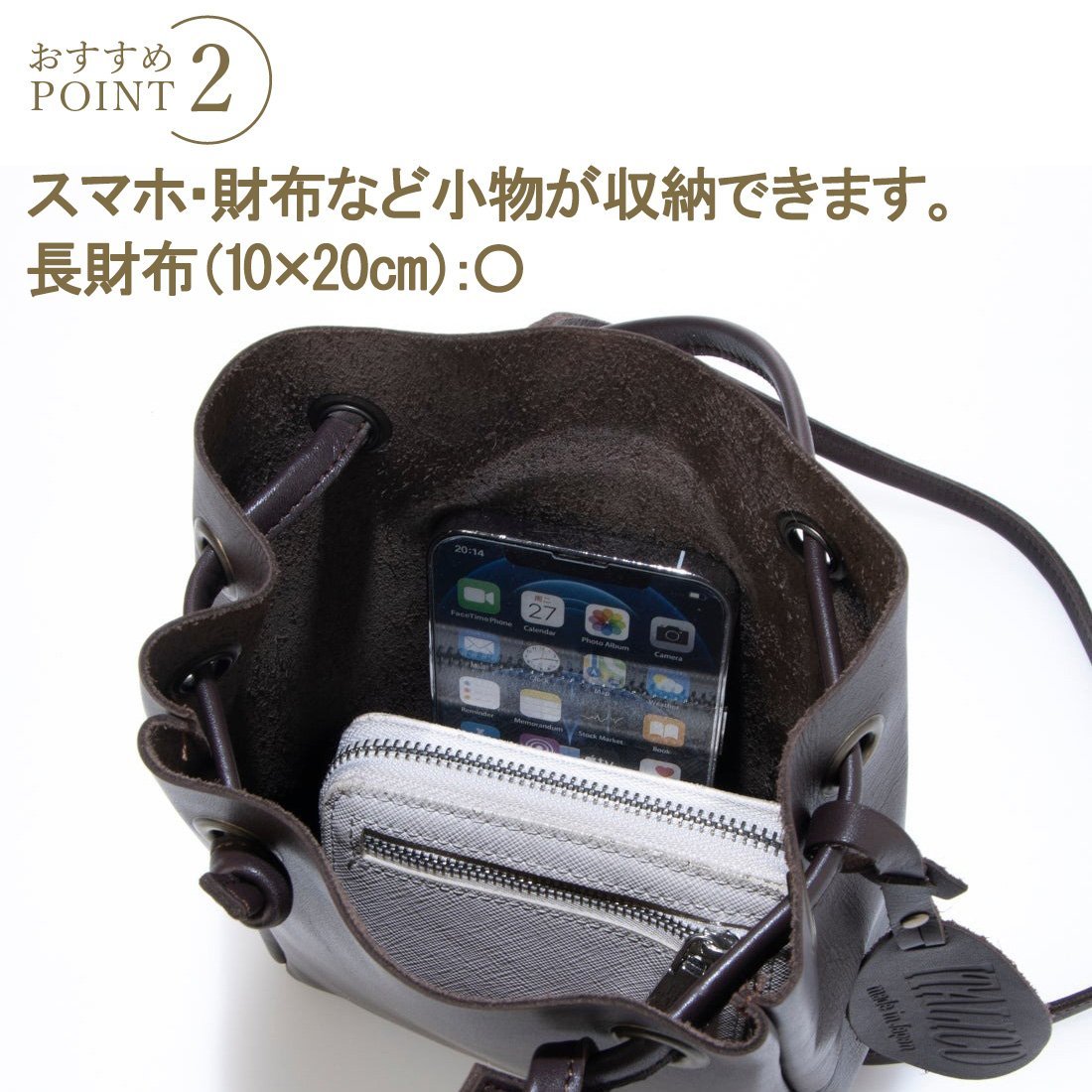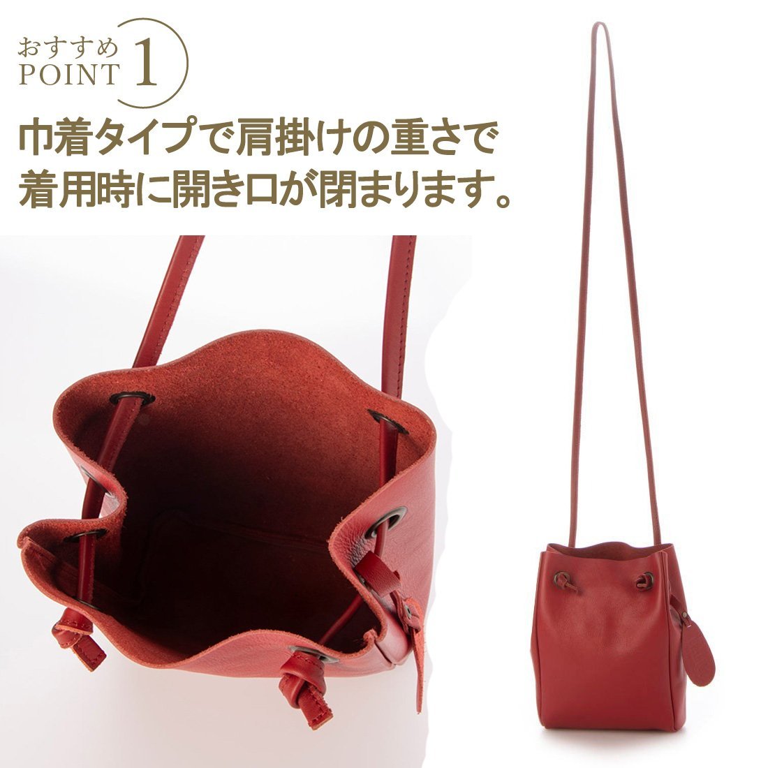 全国送料無料 徳島レザー 巾着 ショルダー ポーチ サコッシュ スマホショルダー ショルダーバッグ