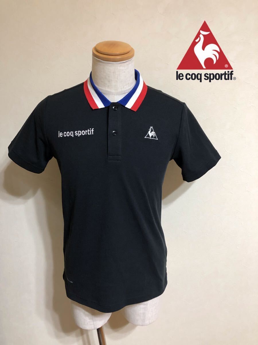 【美品】 le coq sportif golf ルコック ゴルフ ウェア ドライ 鹿の子 ポロシャツ トップス サイズS 半袖 黒 QMMLJA45