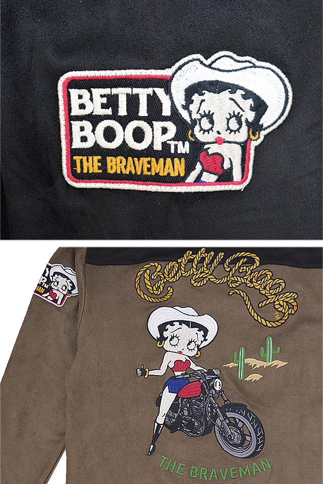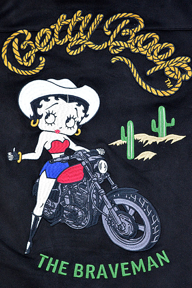 | 1920年代~40年代にアメリカでワークウェアを中心とした製品を世に送り出したブランド「The BRAVE-MAN」から「BR×BETTYコラボ 起毛プレーティング長袖Tシャツ(BBB-2448)」のご紹介です。 大きな瞳とぽってりした赤い唇が印象的な女の子、ベティ・ブープ(Betty Boop)。 背中には愛車で荒野を駆け巡る、カウガールスタイルのベティが刺繍で落とし込まれています。 ボディーには、てろんとした肌触りの起毛した生地を採用。 カジュアルに着こなしに取り入れることの出来る、大人のキャラクターアイテムです。 | |||||||||||||||||||||||||