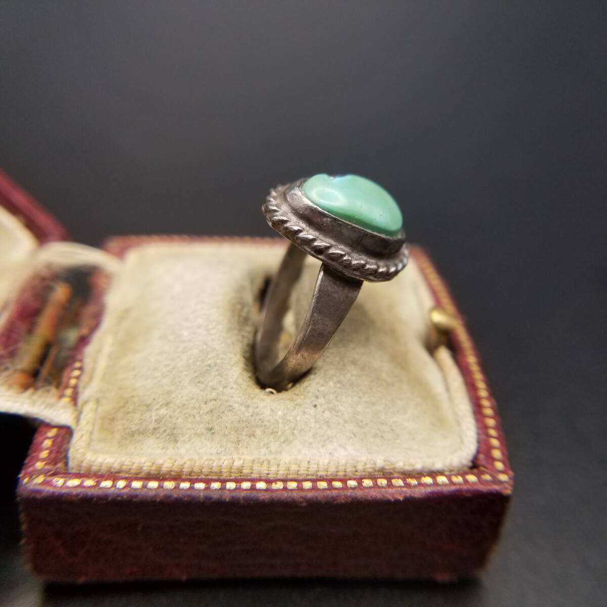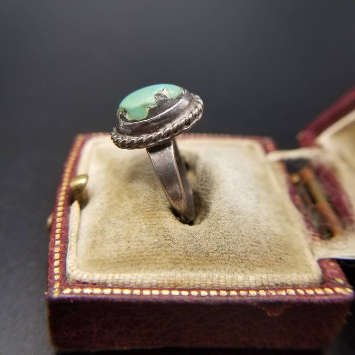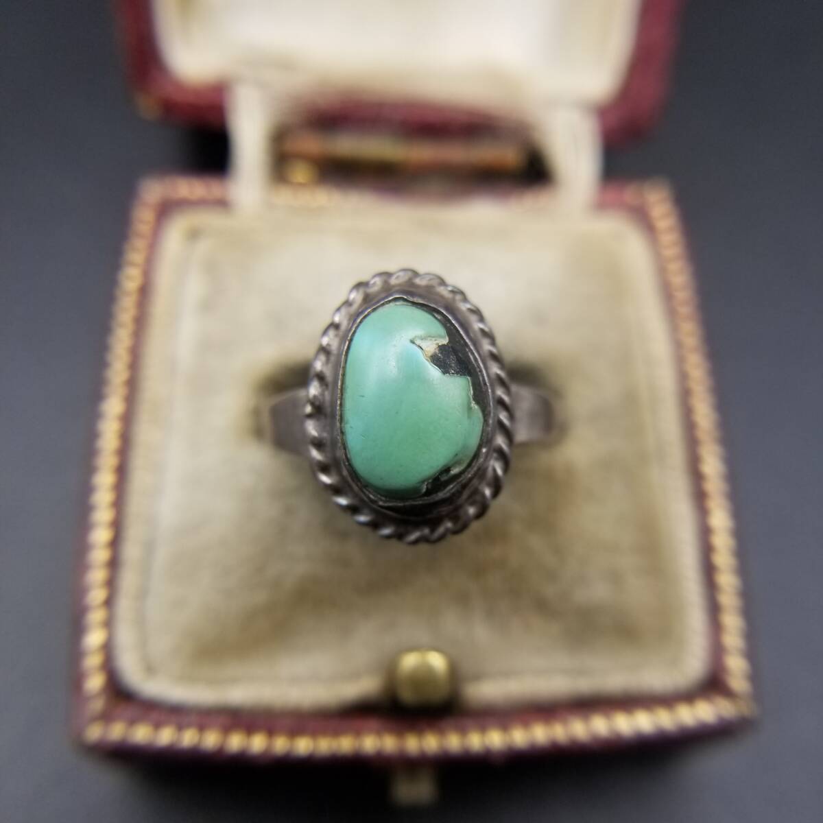 ケーブルリム ターコイズカラー オーバル ヴィンテージ リング シルバートーン 指輪 サウスウェスタンスタイル R14-B