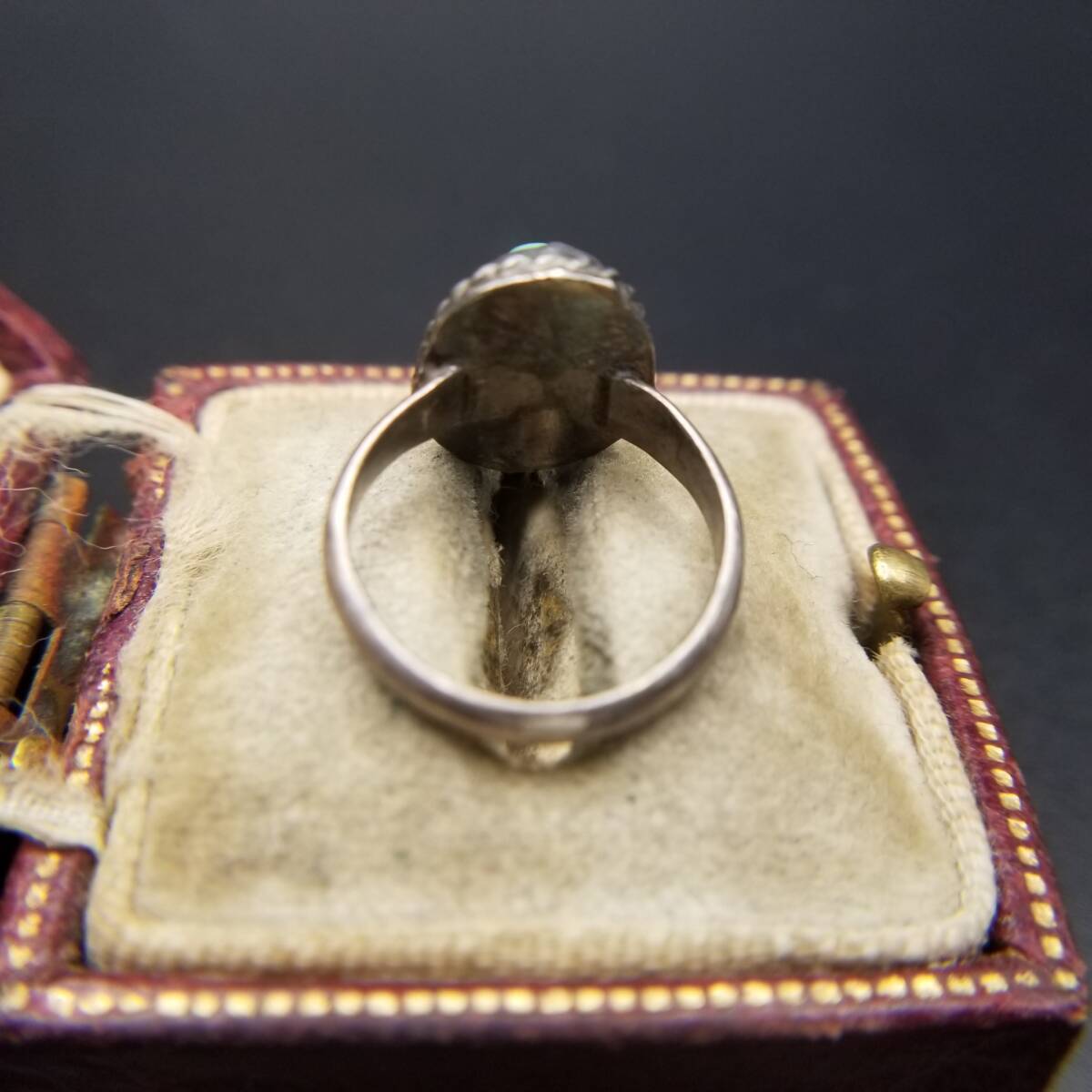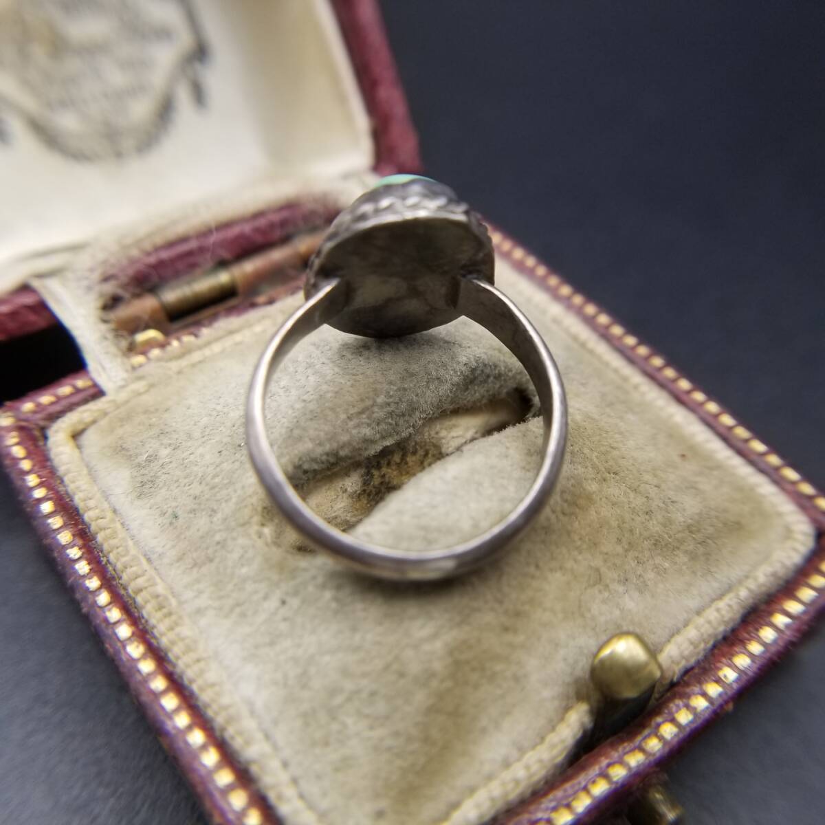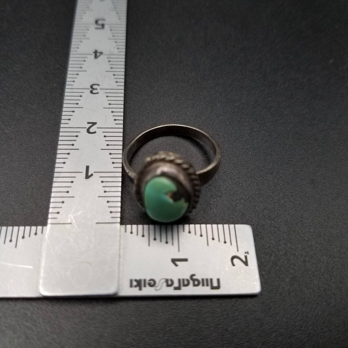 ケーブルリム ターコイズカラー オーバル ヴィンテージ リング シルバートーン 指輪 サウスウェスタンスタイル R14-B