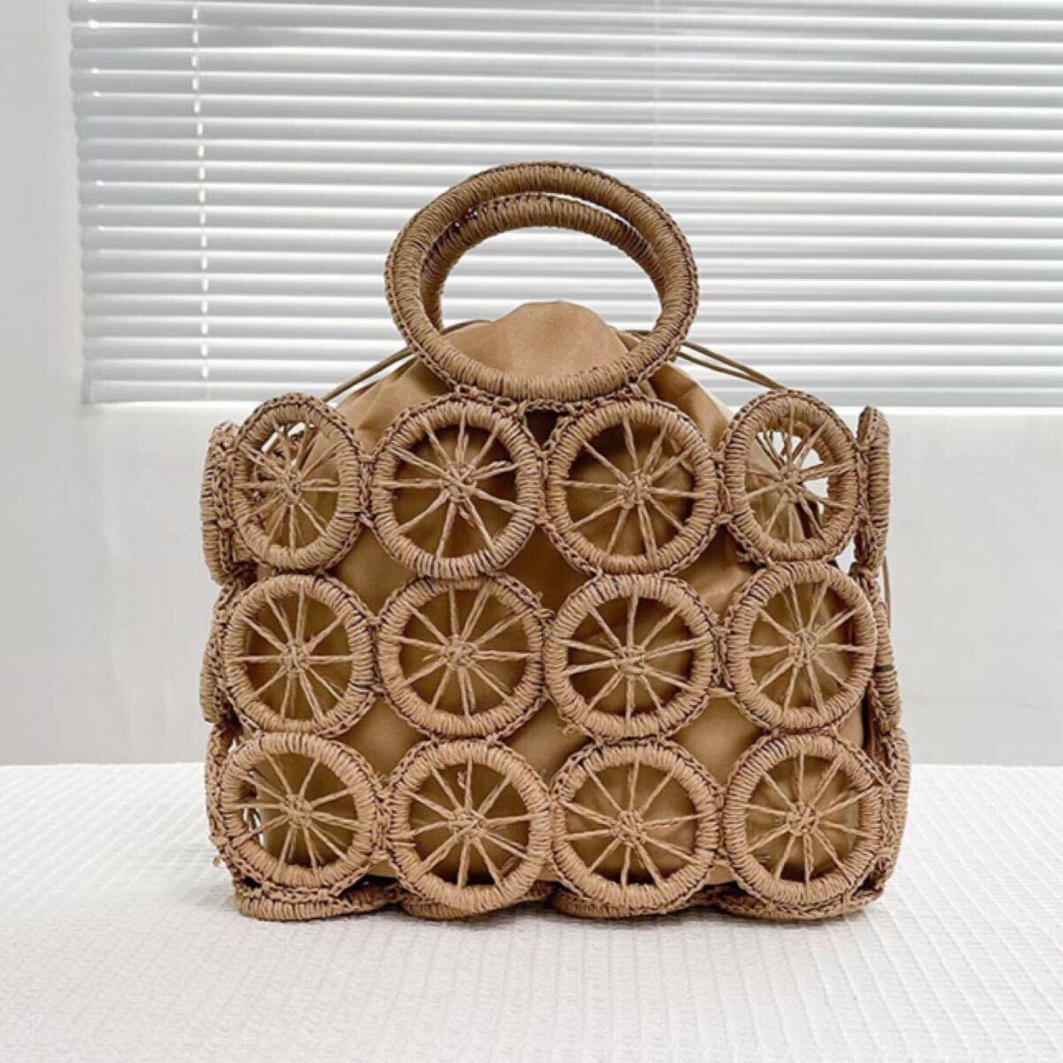 【 カゴバッグ バッグ 巾着 付き 鞄 カバン ハンドバッグ バスケット 編み込み ウッドハンドル トートバッグ ピクニック 】
