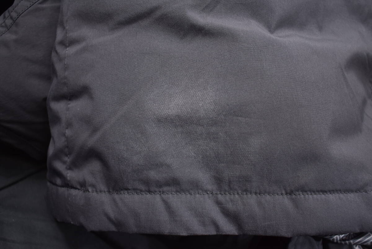 サイズ表記2、素材ポリエステル(加工、ややサラっとマット感)、ダウン90%、中国製