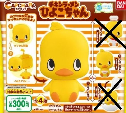 ◎状態 未使用。 未使用ですが、①と②は開封しないと デザインが分からない状態でしたので、 ①は開封しました。 ※画像2参照 画像1にあるものが全てです。 長期保管品のため、全体的に ホコリやチリなど微小なゴミの 付着が多少はあると思います。 未開封のほうは開封をしての 状態確認は行っておりません。 -------------- セット内容 ①ひよこちゃん×1 ③ひよこちゃんどんぶりver×1