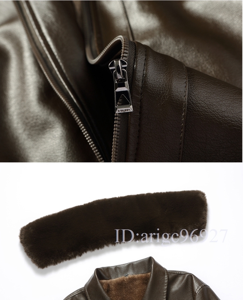 J077★裏ボアライダース 革ジャン 毛皮一体 レザージャケット メンズ ファージャケット 秋冬 A【52~60】選択可
