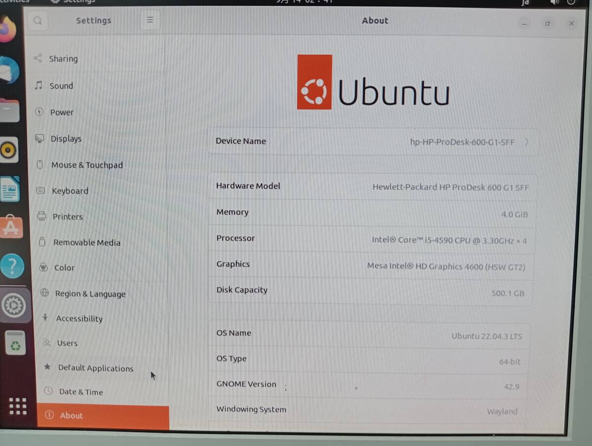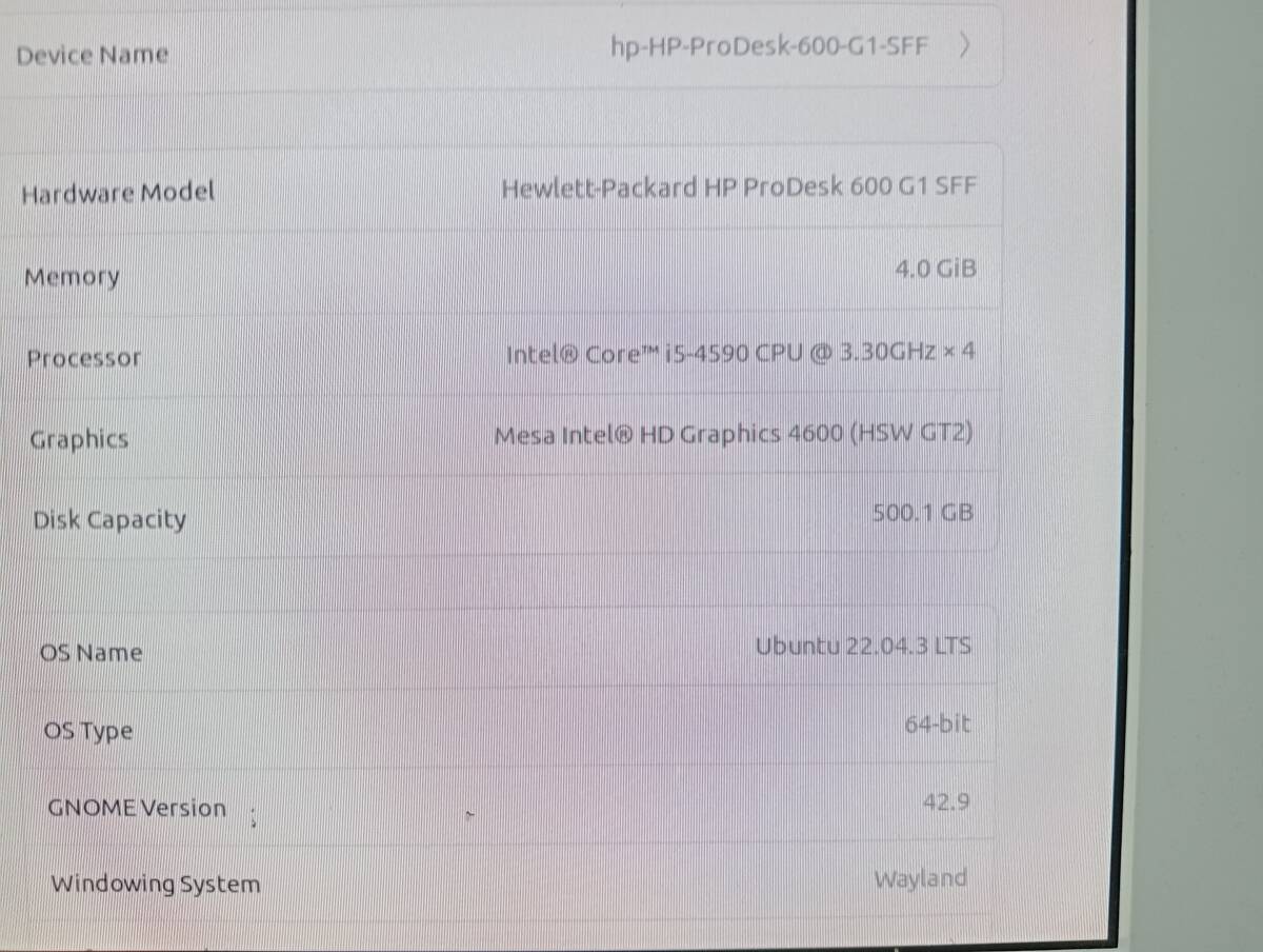 HP ProDesk 600 G1 SFF 省スペース型 Corei5 4590 3.3GHz/4GB/500GB/DVD-MULTI/Ubuntu22.04.3LTS/LibreOfficeの出品です。