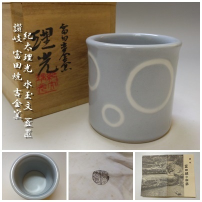 【T-261】讃岐 富田焼 吉金窯 紀太理光 水玉文 蓋置 共箱付 茶道具 | |||