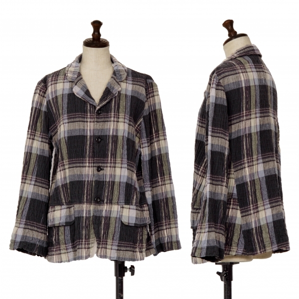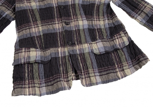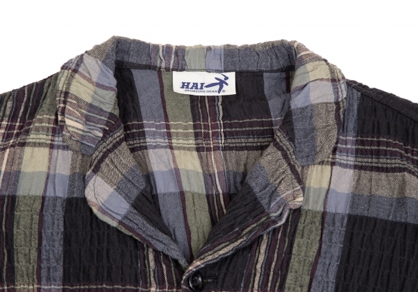 | ハイスポーティングギア ミヤケデザインスタジオHAI SPORTING GEAR MIYAKE DESIGN STUDIO シワプリーツチェックシャツジャケット ネイビー紫他M |