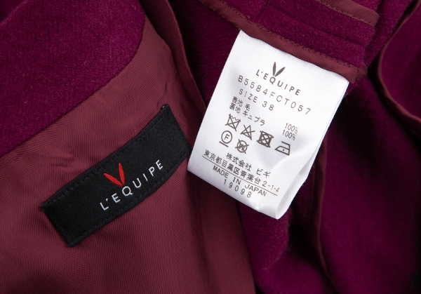 レキップヨシエイナバL'EQUIPE YOSHIE INABA 起毛ウールチェスターコート 紫38 |